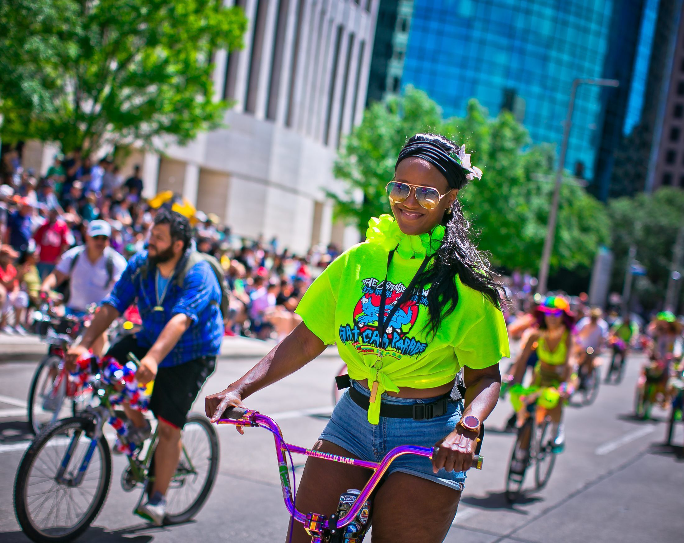 The flower man bicycle brigade honors iconic Houston Artist, Cleveland Turner ,the Flowerman