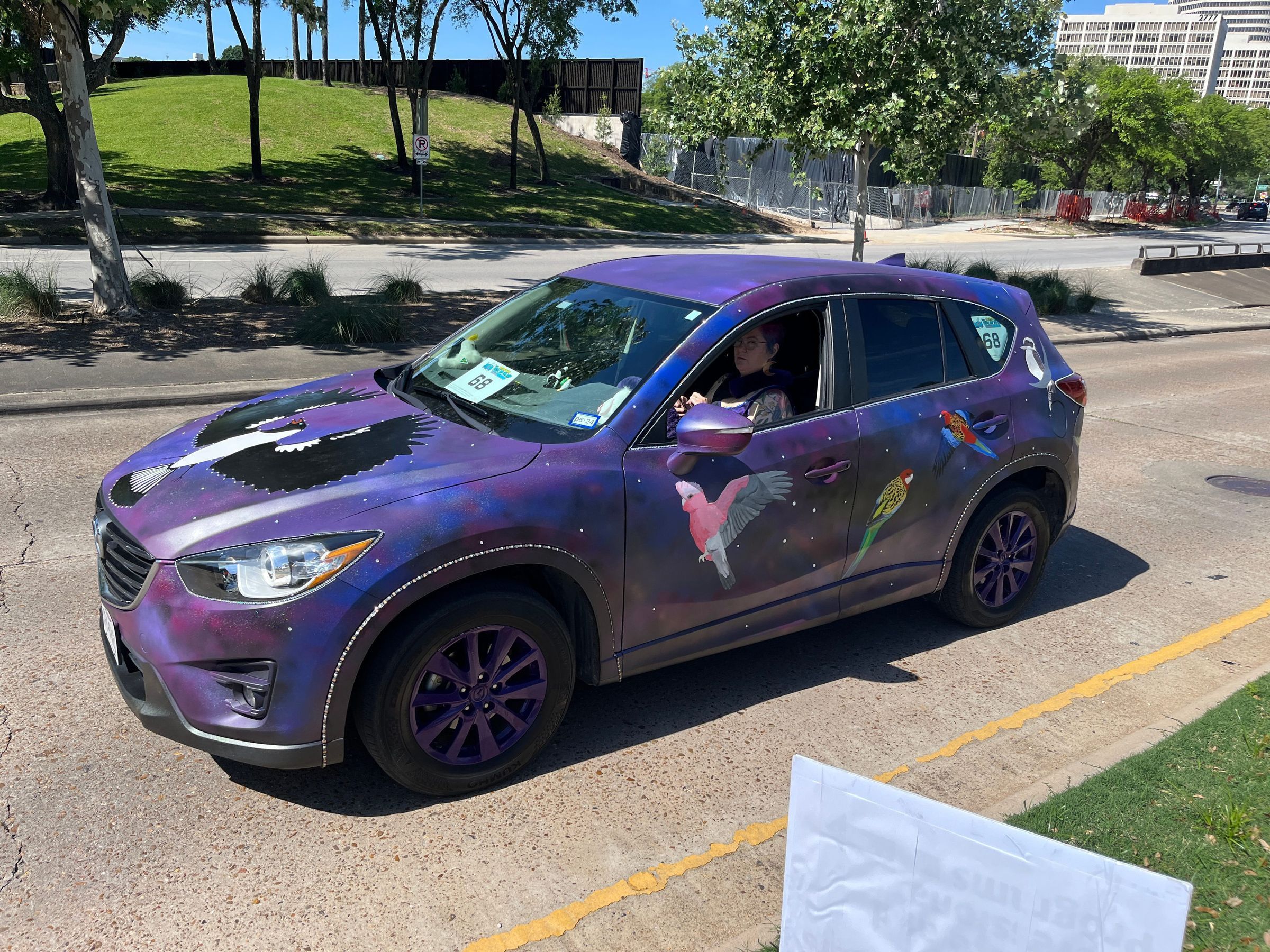 I’m looking forward to sharing my art with the community, and hanging out with my artcar family."