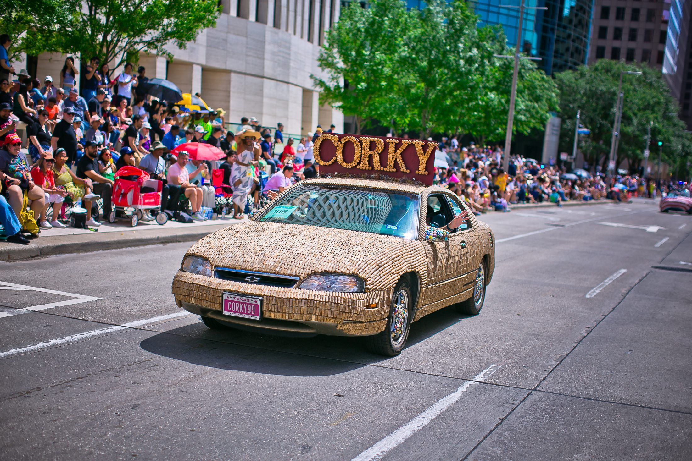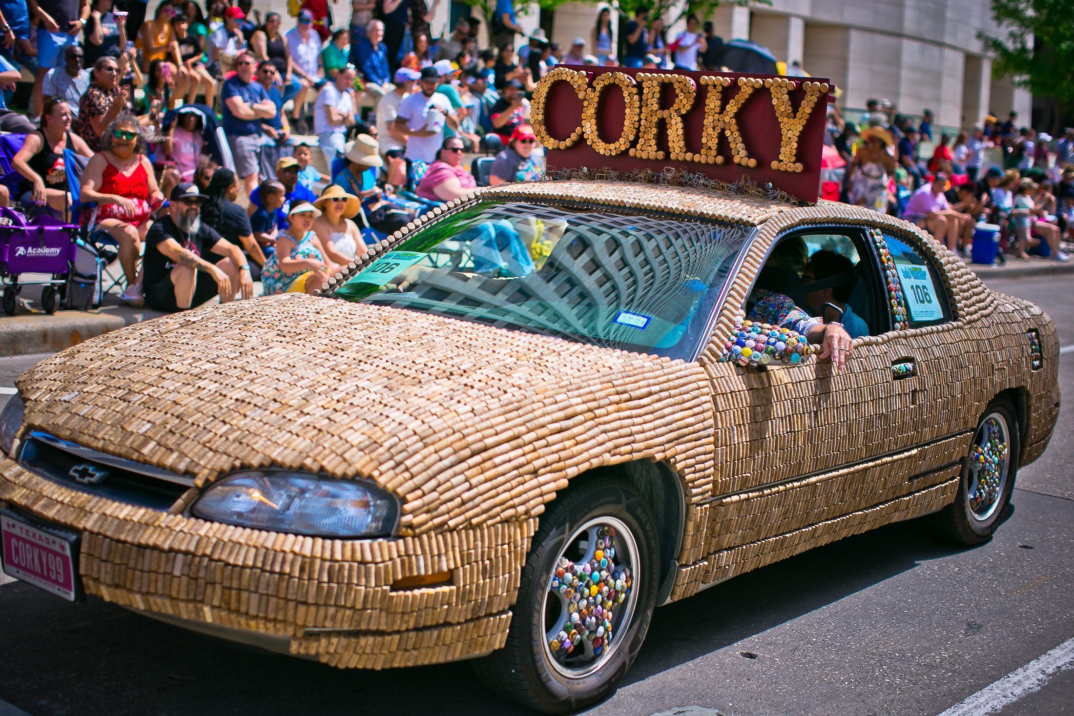 My late wife,Kristin, created the car as a tribute to her dad. It was his car until he passed away. Her love of wine and a good time led to the creation of Corky which is made up over 10,000 wine corks, champagne toppers and a selection of wine and champagne labels.