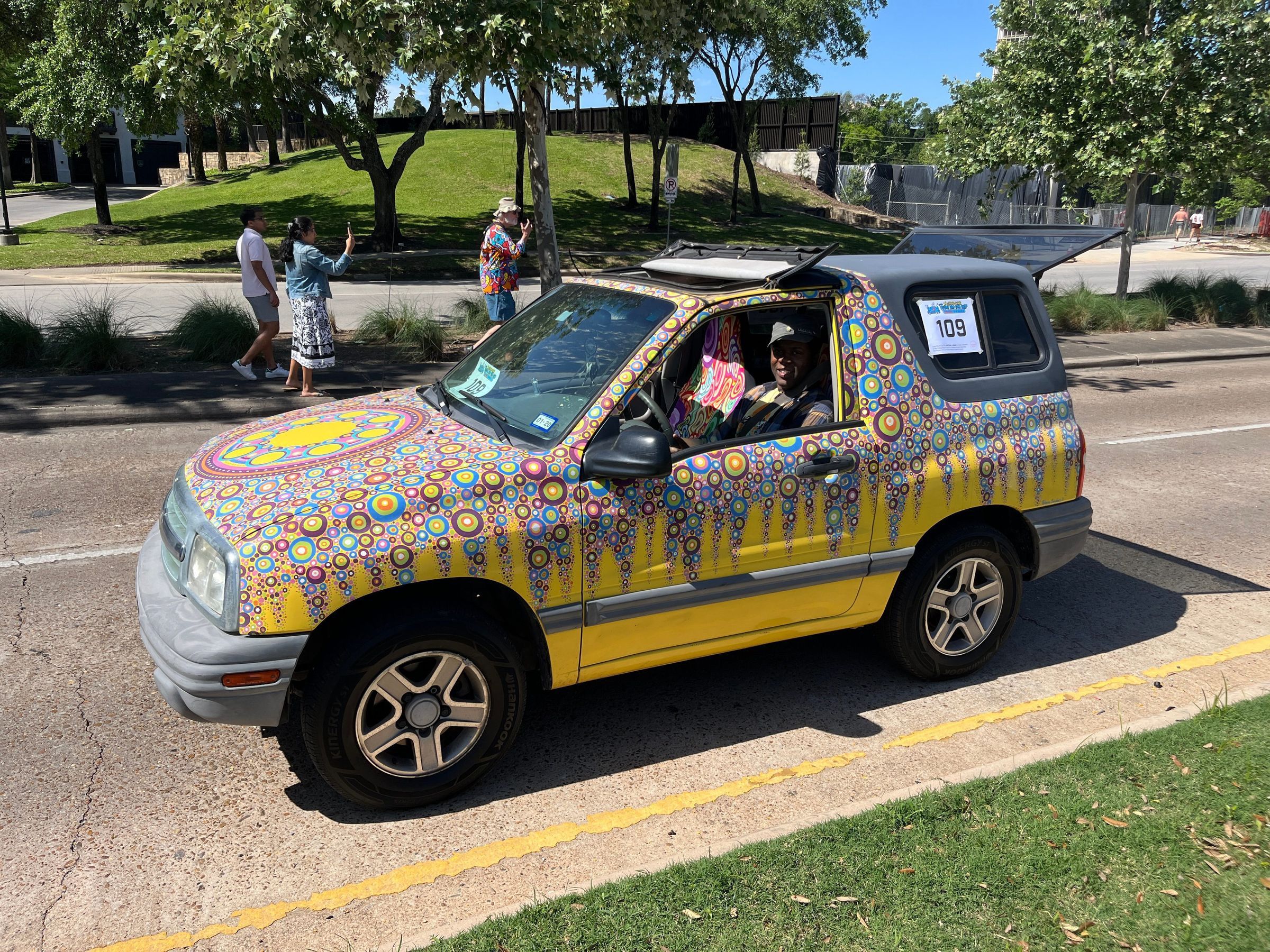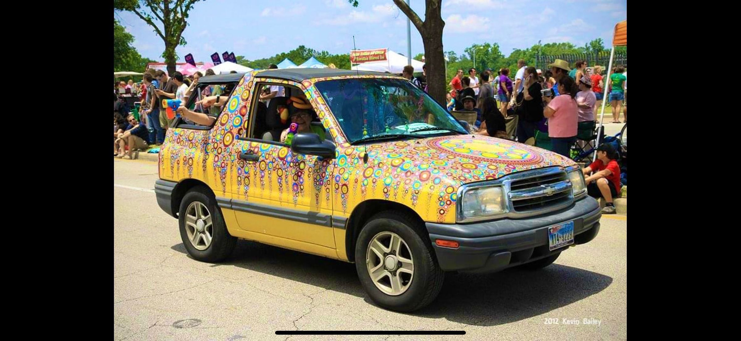 Painted by artist Robynn Sanders and has appeared in many art car parades and events. She was recently recommissioned and is happy to join the parade again after several years sabbatical. She celebrates bubbles!