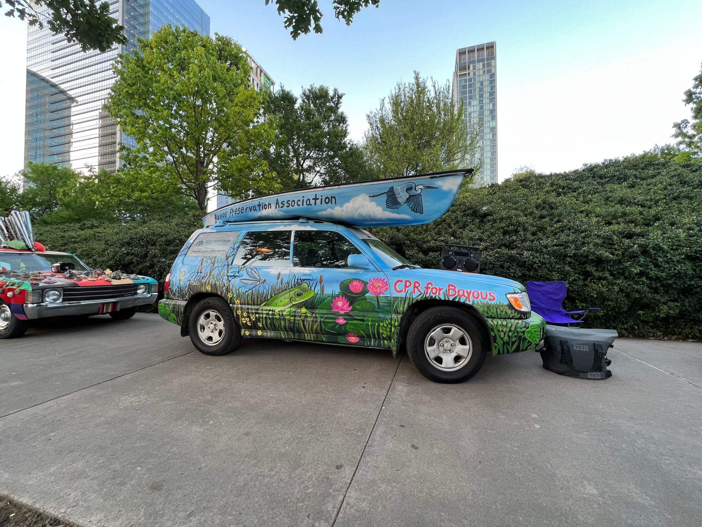 "UP Art Studio has been the artist for this car since its inception, and through several iterations. Noah has always been the pilot of this car. This car is now in our care full time. While our personal mission is Civic Pride through Civic Art, this car's mission also speaks to us as we care deeply about our waterways and environment.