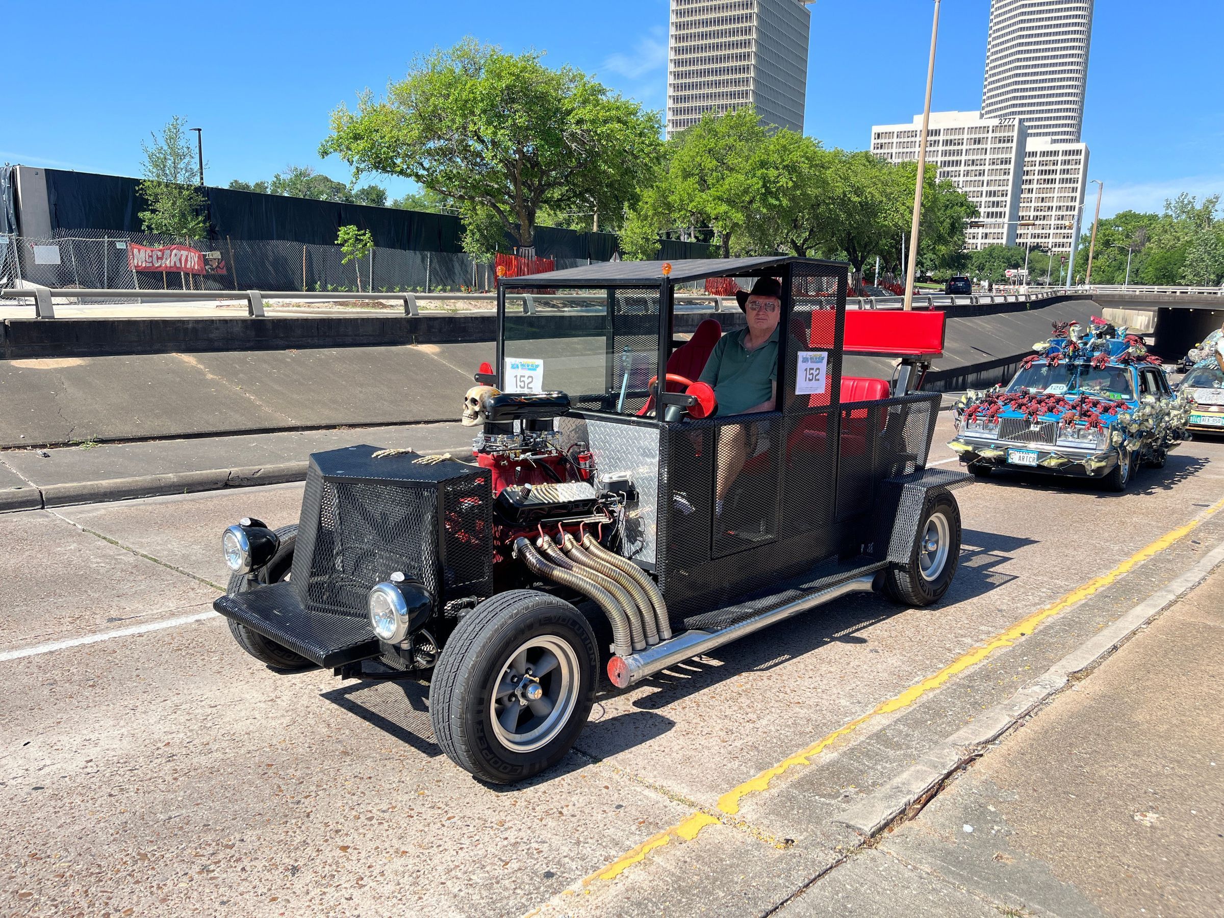 I am inspired by all types of cars from the classics to rat rods to funny cars. I decided to make my own car as a hobby in my spare time. We heard about the Art Car Parade a few years ago and decided to sign up my car. I'm always excited to see all the other art cars and meet people who have similar interests. Meeting new people and participating in Art Car Week is something my wife and I look forward to each year