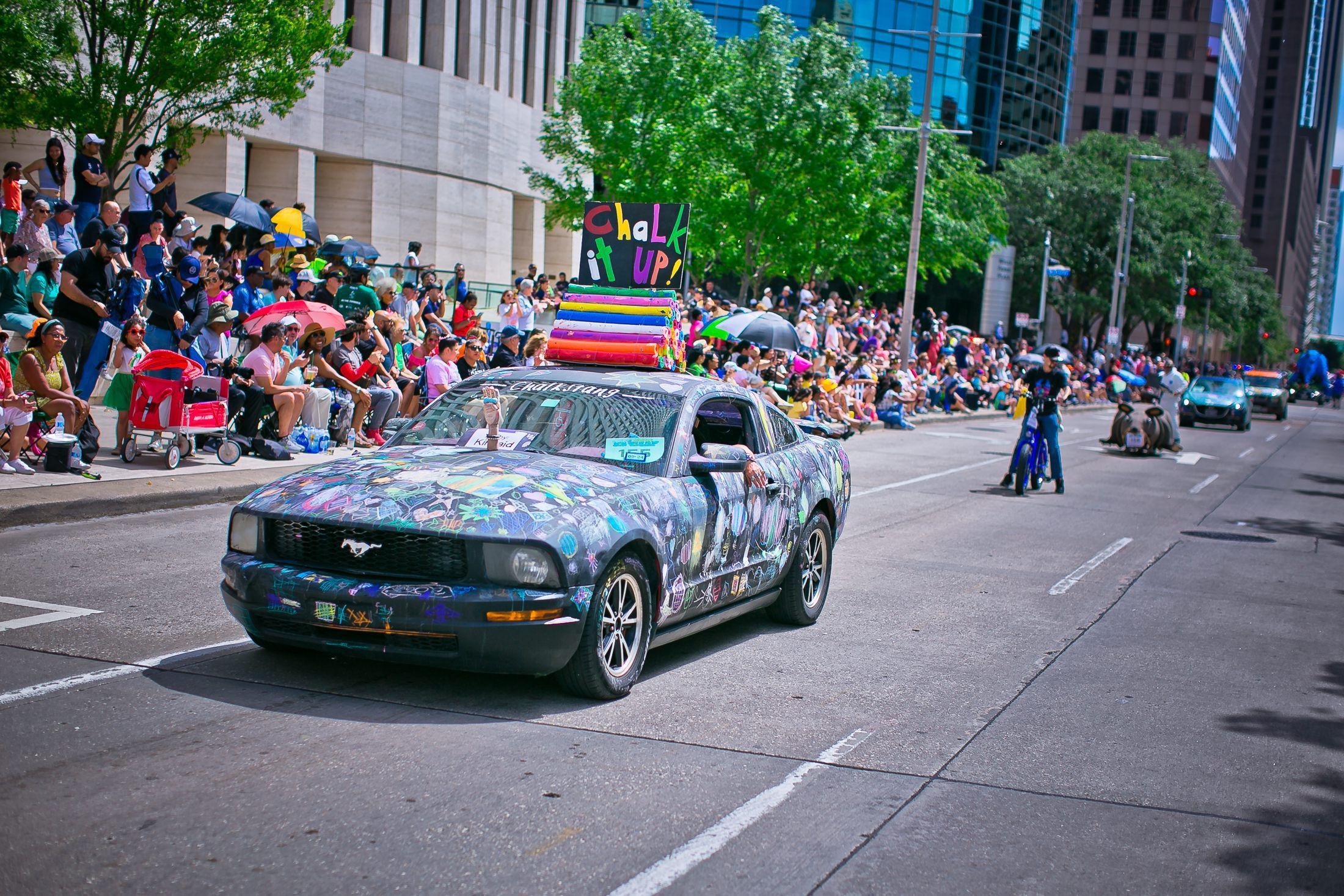2007 mustang. Painted with chalk paint so anyone, anywhere it goes can “ chalk away”! It’s just to bring as much fun as I can to those around me.