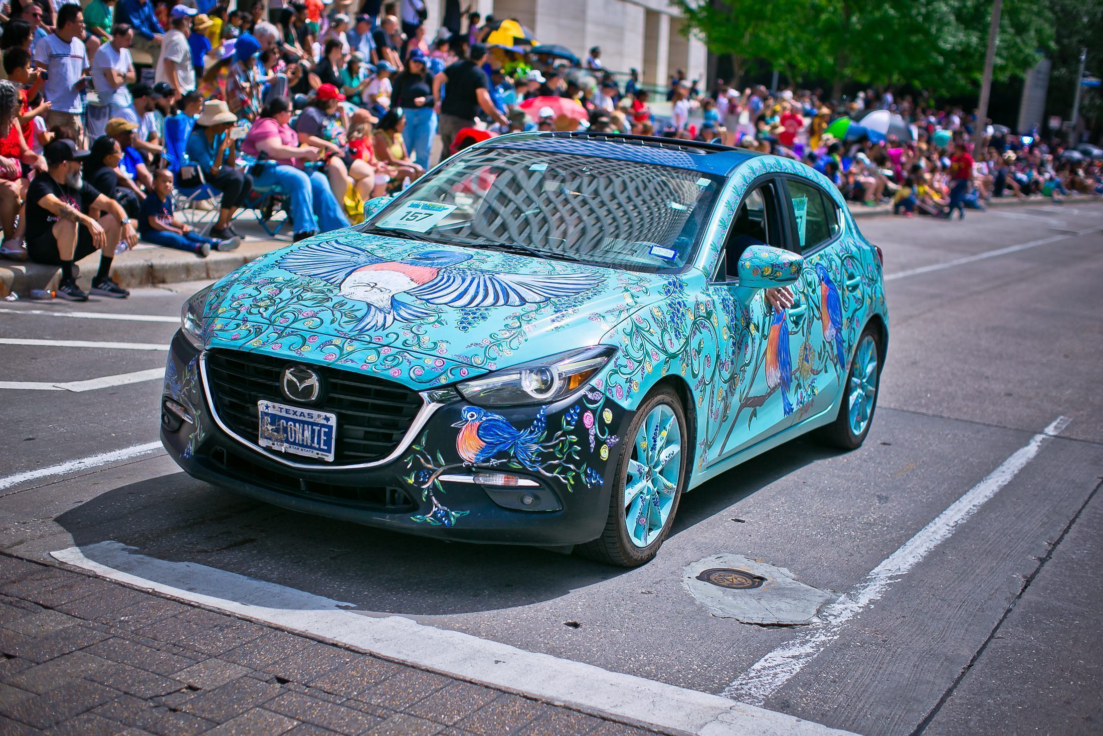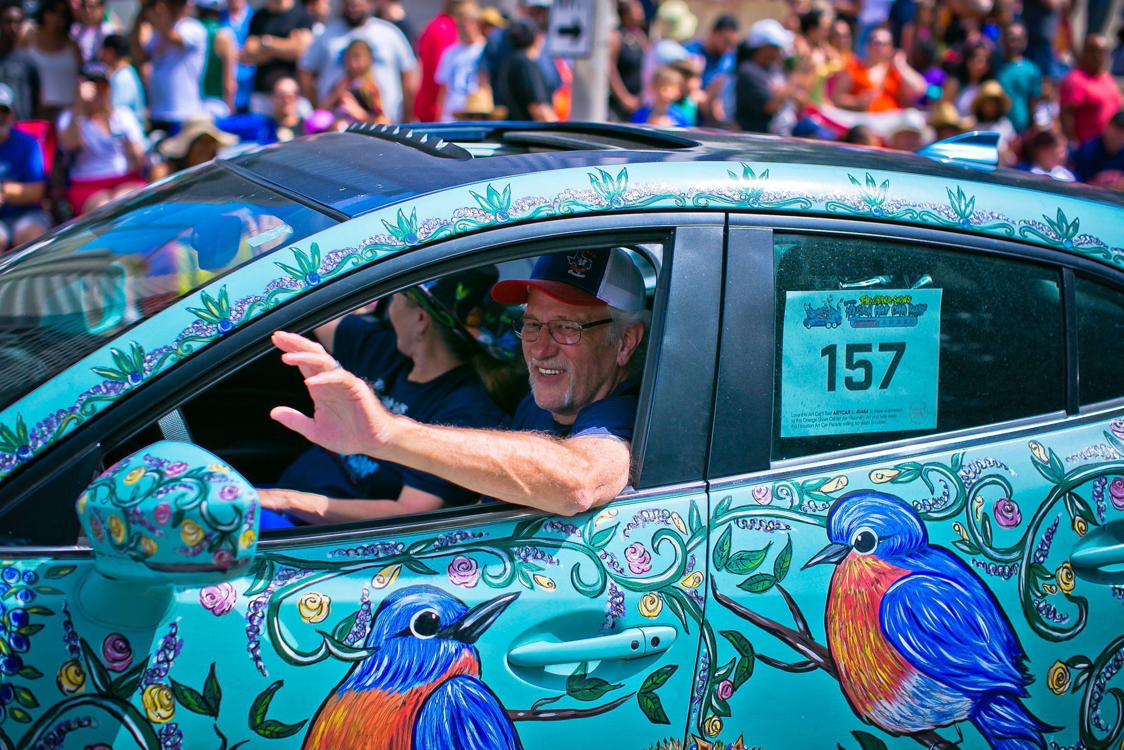 May the Bluebird of Happyness bring you much joy. Join us at the Texas Bluebird Society & Huntsville Audubon Society. If you like a parade, you gotta love the Art Car Parade! Supporting local artists is what I do! My Art Car this year is dedicated to my mother/artist who passed away in 2023 at 96 yrs old