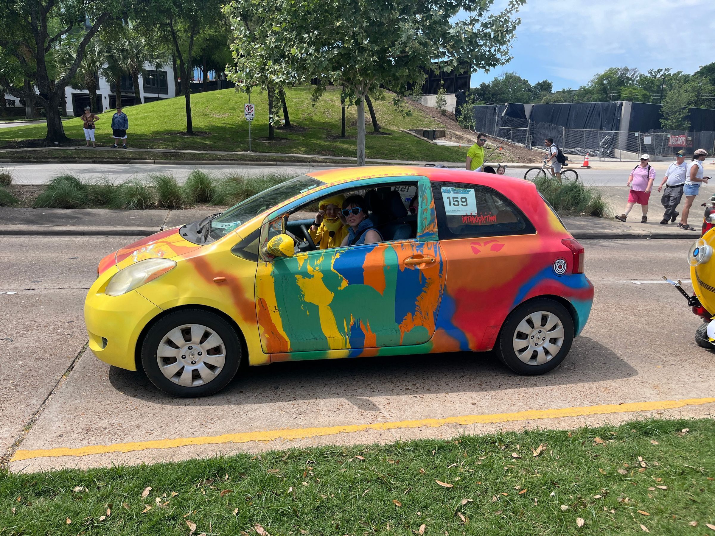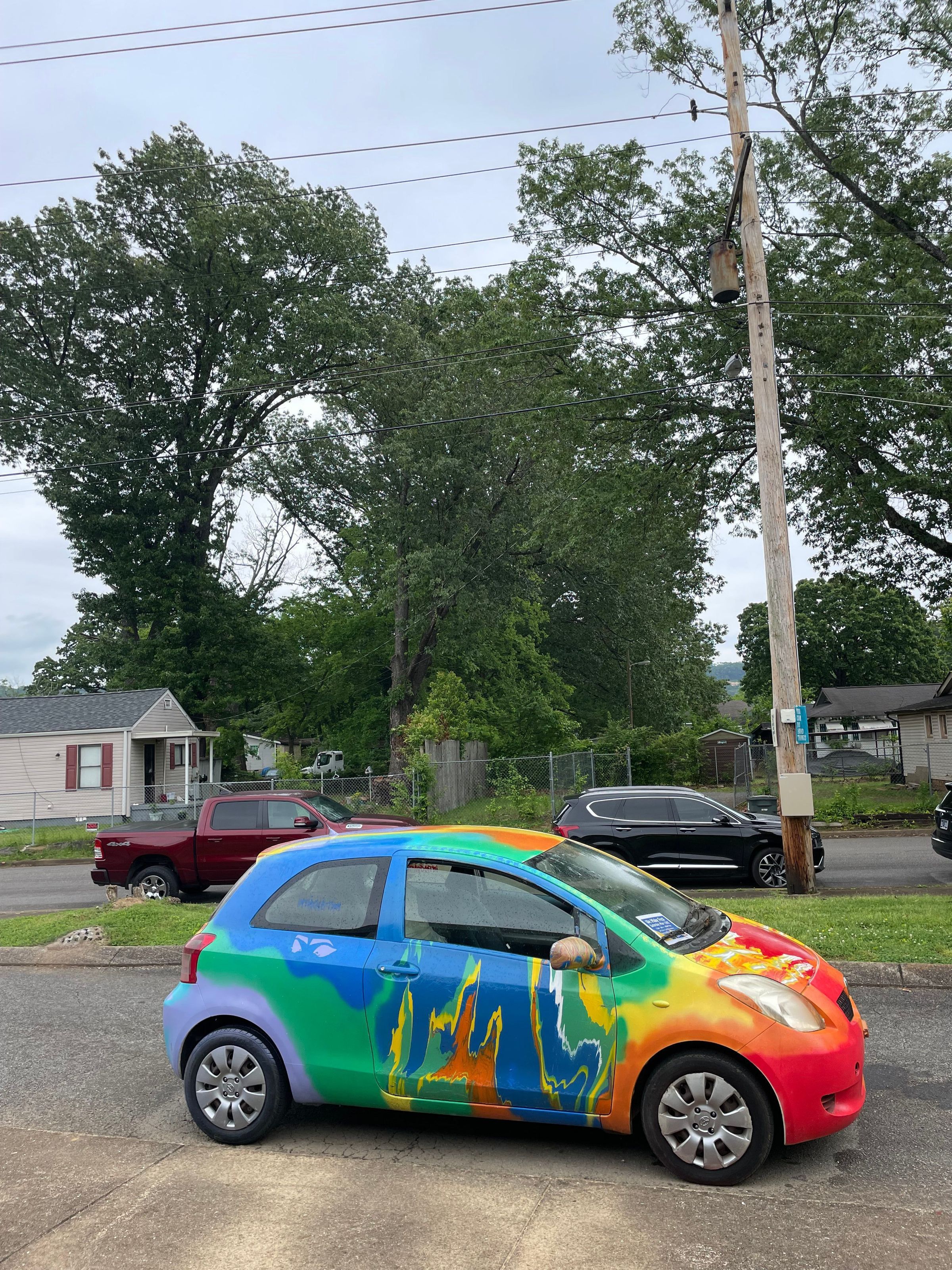 My name is Briah Gober. I am an artist born and raised in Chattanooga, TN. This project was actually inspired by Art 120 and Kate Warren. Kate Warren has been attending Art Car Week for years now and has made an effort to share some of the amazing things that happens in Houston, with us here in Chattanooga. Kate Warren was donated a car and she asked me if I had any interest in painting it. Oddly enough, painting a car had been a dream of mine for years! I jumped on it instantly, before even knowing how I would actually paint it. The process took lots of trial and error, but the end resultis what I was going for, which was to paint the car in my signature drip style. I’m beyond excited for Art Car Week just to see what is out there and to see creative works and to meet other artists doing big things in the big city! I’ve also never been to Houston so I’m just beyond excited to see all of it.