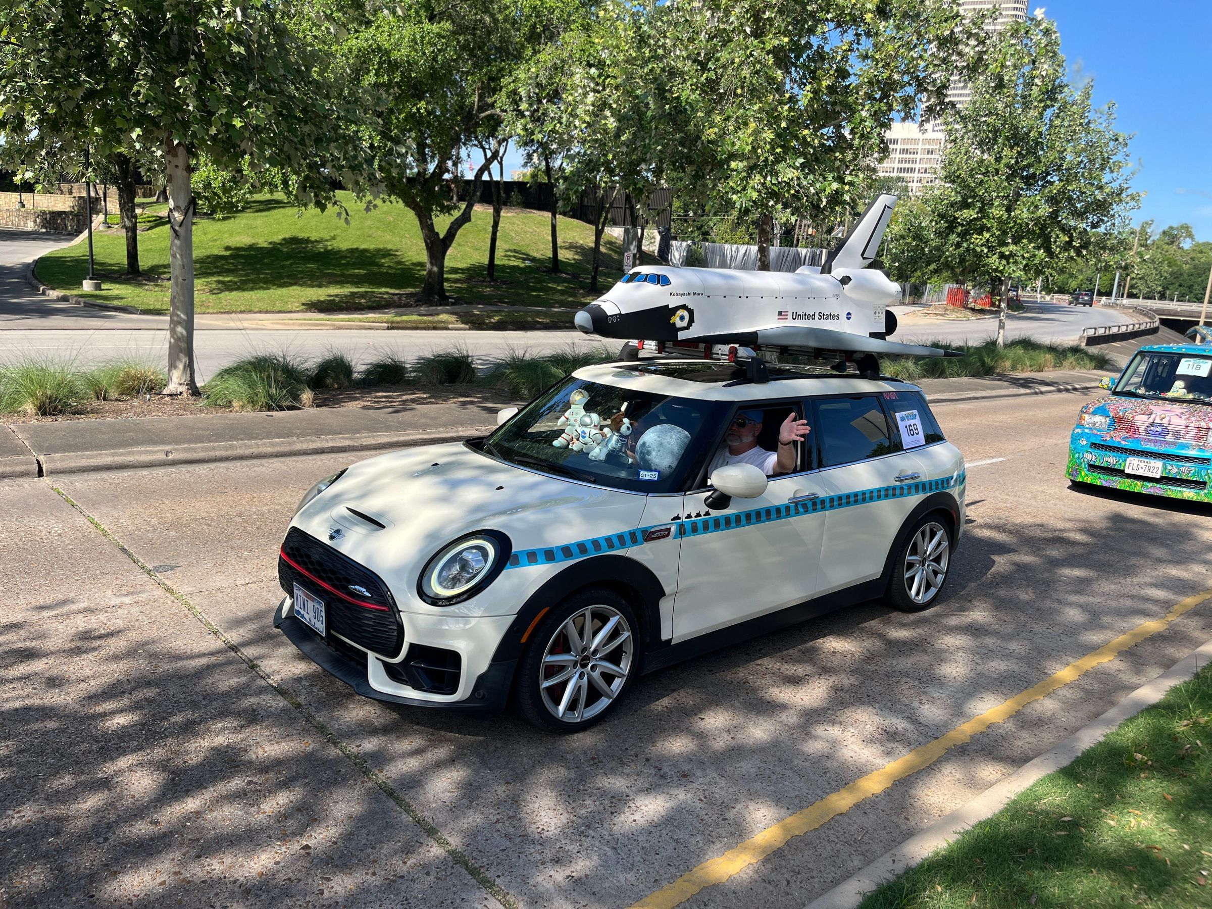 I'm a long-time Houstonian, growing up when school kids went to NASA every year. As a space enthusiast and model maker, I've built space shuttles of numerous sizes. My first artcar, the ShuttleVan, traveled the country for five years, scores of parades and events and three space shuttle launches. Driving around Clear Lake with a space shuttle car has given me the opportunity to meet interesting people with fond memories of the connections to the space shuttle program in Houston.