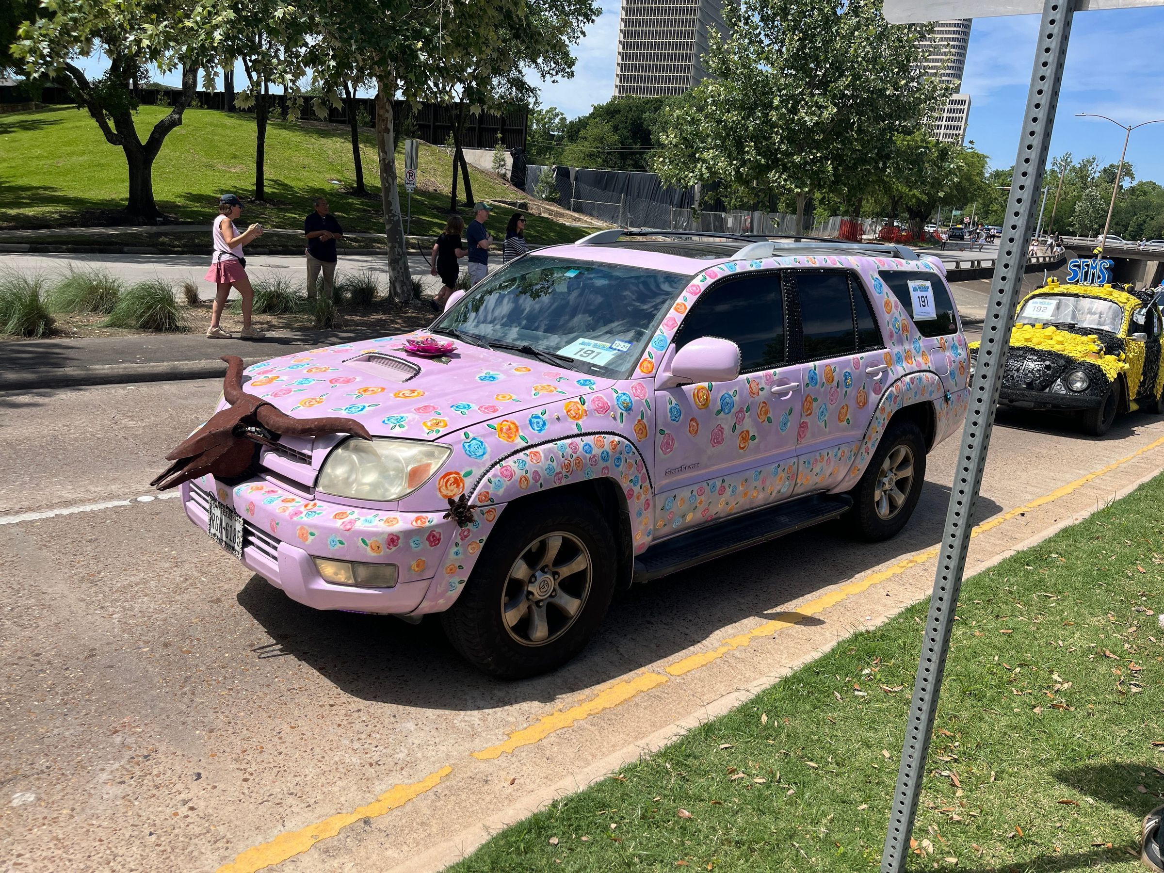 I have been on the art car scene since 1996. My first Art Car was the Garden Car. I have had several cars between now and then. My love is in functional art and I love watching artists and people not claiming to be artists, come together and create beautiful art on wheels.