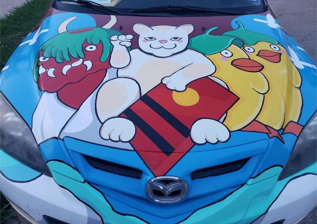 Amanda Bankey and Jackie Valore made this artcar to represent the many years they've been friends and how they adore Miyazaki films. These two artist will be celebrating their 20th year friendship.