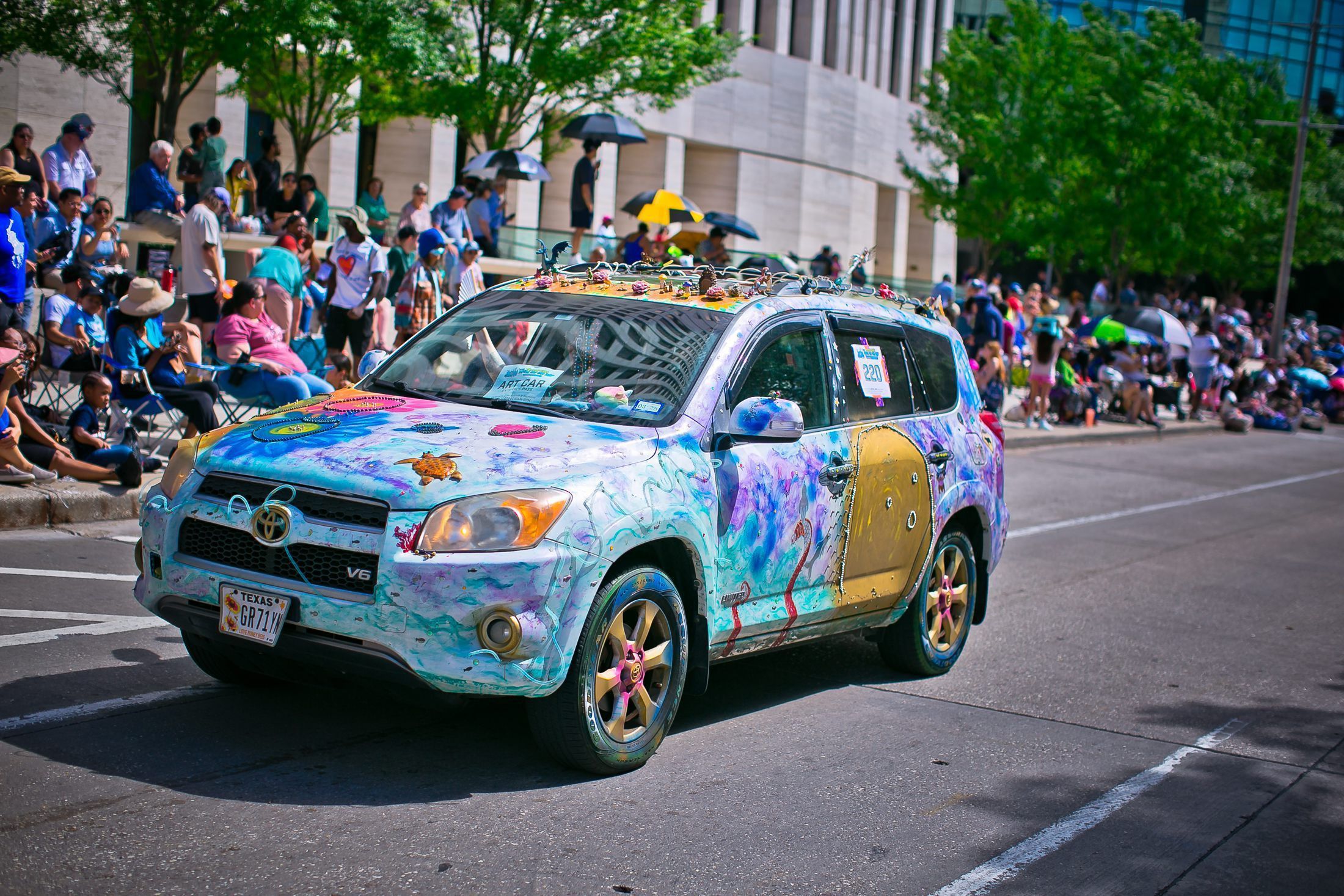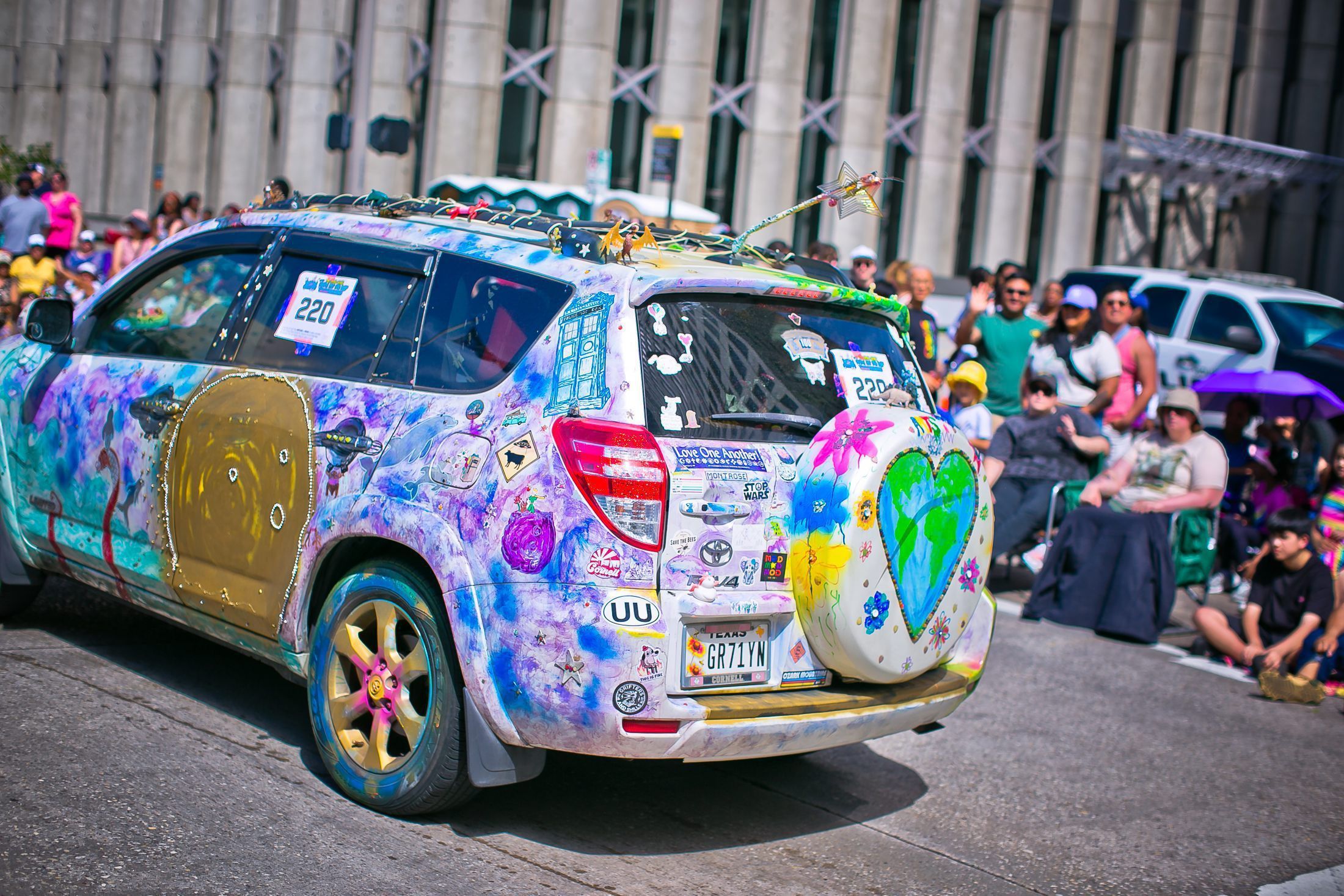 Laura McIntyre is a life-long mixed-media artist, veteran art teacher, and active daydreamer. What originally started as paint recall and an outlet to relieve stress during quarantine– her art car, Iggy the Imaginationmobile, became so much more. She loves fantasy, sci-fi, and whimsy, and is most inspired by artists that love color, think outside-the-box, and have fun with their artwork. She especially loves fauvism, and the art of Frida Kahlo, Barry Kite, David Hockney, and Bisa Butler. She cannot wait to see everyone’s magical art car creations, and to spend time seeing the wonders of Smither Park and the Orange Show.