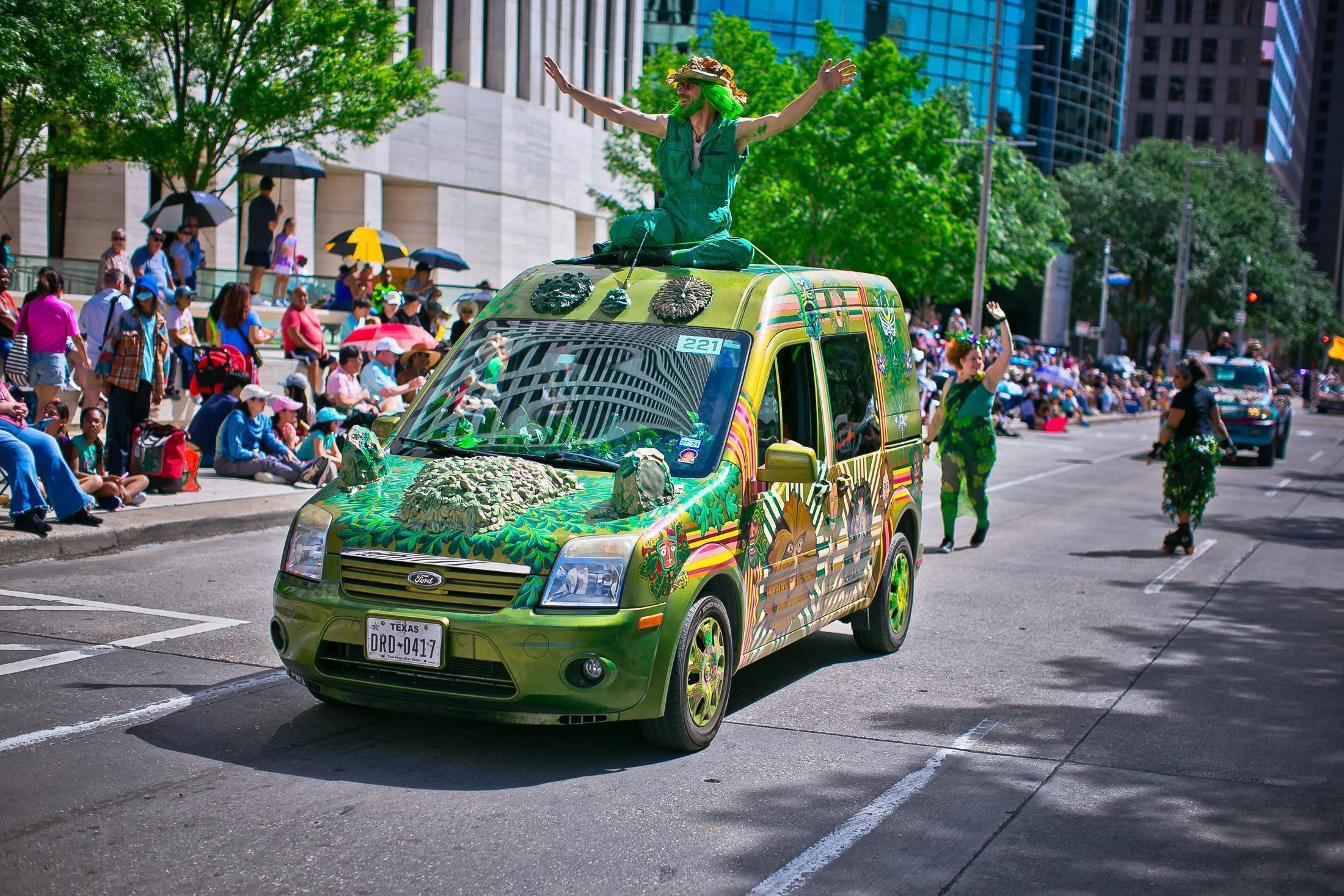 The Green Man Van is now owned and driven by Shelley's life partner, Kirk Suddreath, who is the creator of the Jesus Christ Monkey Car which was seen in Art Car parades and events, and on the streets of Houston for 13 years.