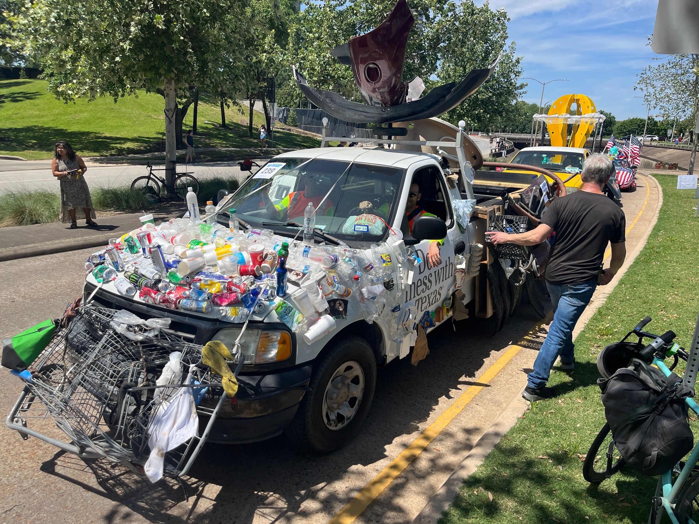 "Found On Road - Don't mess with Texas ®, is a retired Texas Department of Transportation (TxDOT) fleet vehicle decorated with items that have been found on our roadways. Items include tire debris, chairs, ladders, boxes, cans, paper bags, fenders, bumpers, hub caps, cups and cigarette butts – pretty much anything else found on Texas highways. We decided last year that we wanted to point out to the motoring public what we find and how it could affect our daily commutes. We want to remind travelers that