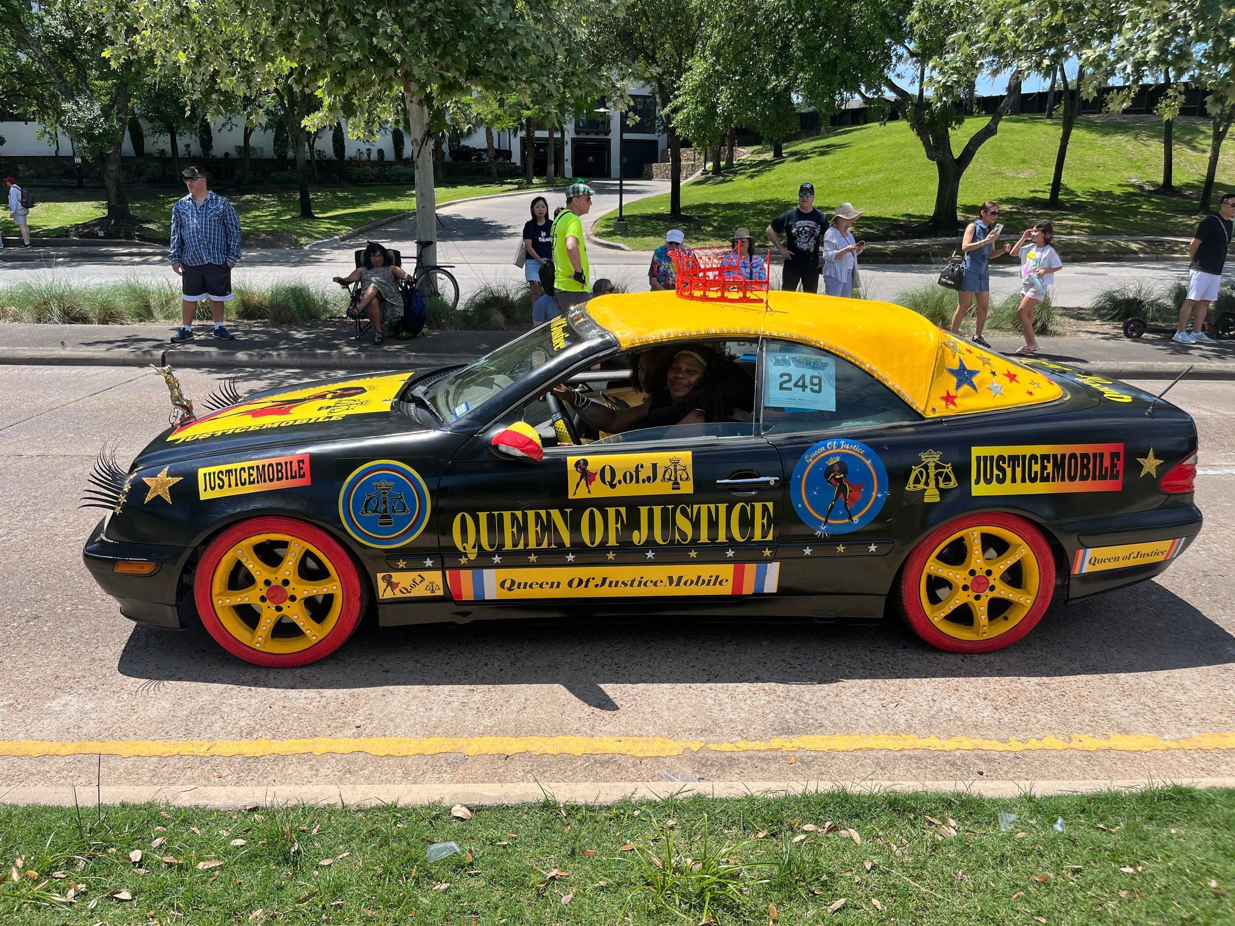 I am considered the Queen of Justice. I always wanted to save people since I was little girl. I would like to drive a Justicemobile with elements of Justice. I want to test the waters. I have always wanted an art car and to be in this parade. I come every year, but I used to Sing in Night Court so we always had rehearsals and I was never ever to come. I have retired from night court and now I would like to be a part of the art car community, and create and build my car.
