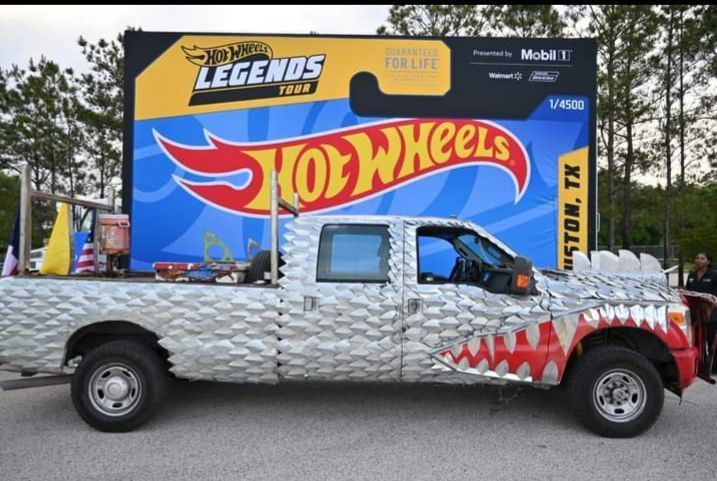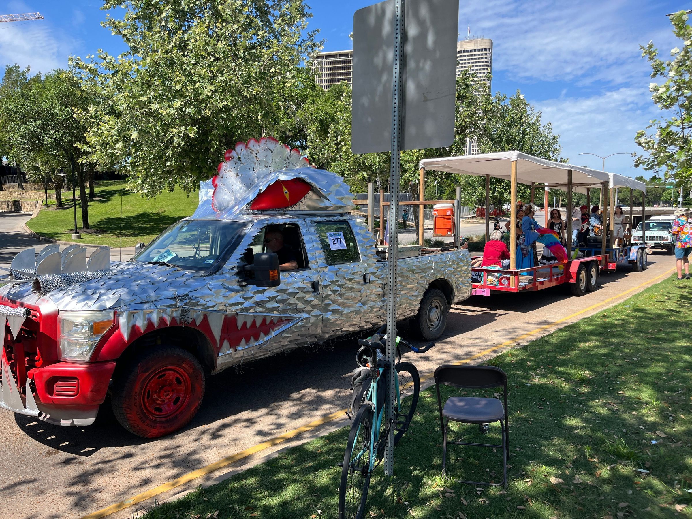 My Dragon truck covered in over 1500 hand cut metal scales, The World Famous Tribal Lilies belly dancers, and local Gulf Coast Rock provided by Little Screaming Kenny and the Sidewinders.