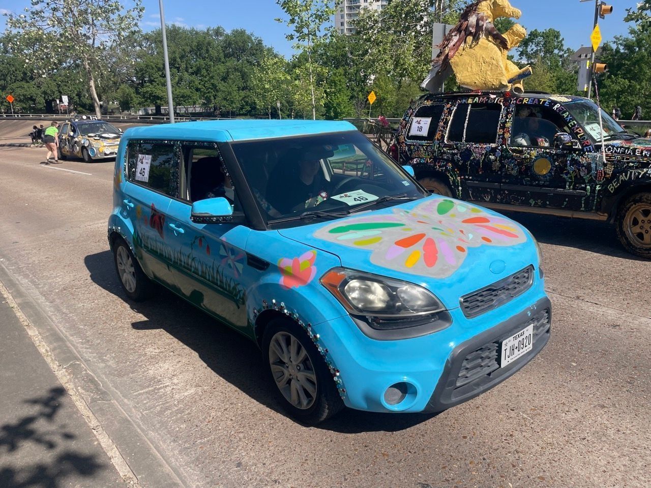 ---- As if channeling the spirit of Rizzi wasn’t enough, they’ve also taken inspiration from the classic anthem "We Built This City on Rock and Roll" by Starship and added some musical symbolism!---- I am 17 years old and a second generation artcar artist. I've participated in almost every art car parade since I was born but this is my first car that Ive created by myself. Prior to this I drove Mingo which I created with my Mom. I've always loved art car and have always planed on having one.