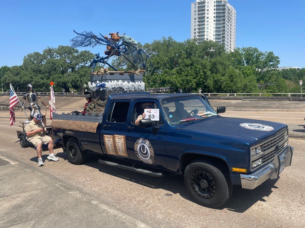 ---- Scouts have used rope and wood to build their art car.---- We thrilled to be surrounded by and contributing to Houston's art community. Thank you for letting us be a part of the parade!
