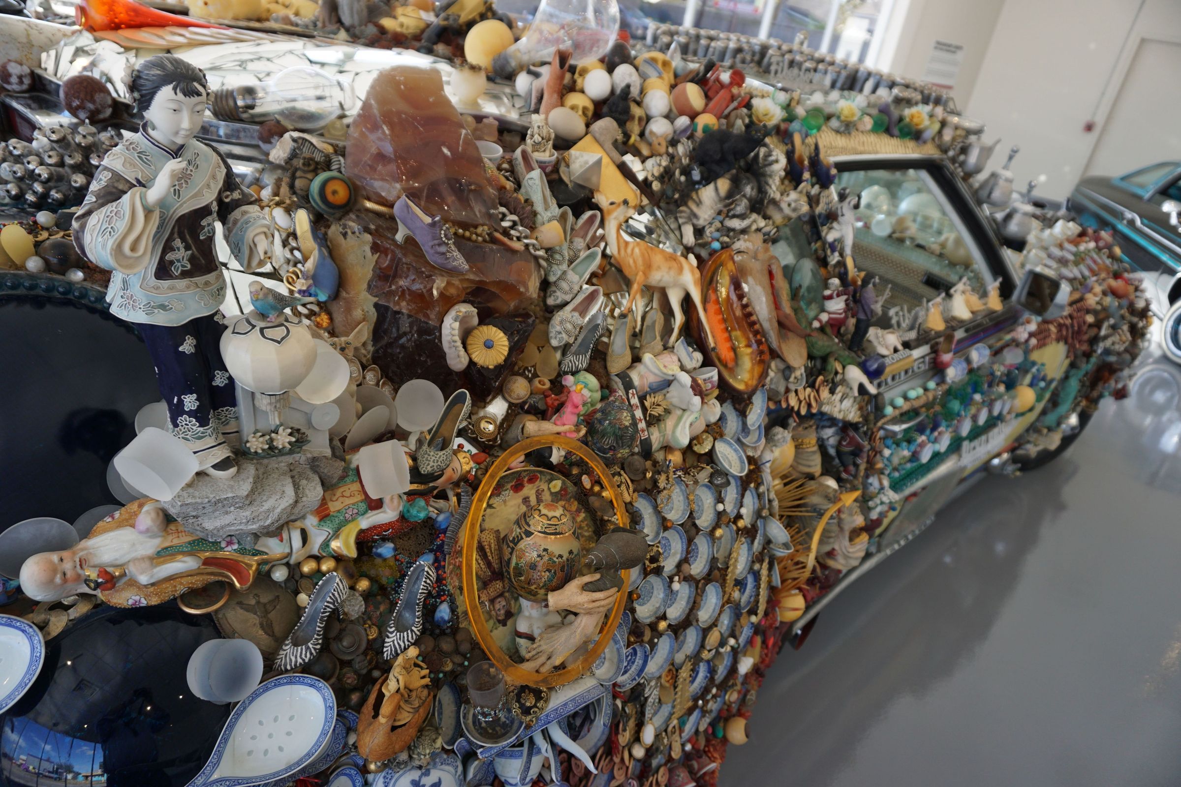 ---- 1972 Cadillac Eldorado. Mixed media: glass, plastics, auto parts, ceramics, mirrors. First Place Art Car Winner in the 2006 Orange Show Center for Visionary Art Houston Art Car Parade. Courtesy of the Art Car Museum collection owned by Ann Harithas.---- n/a