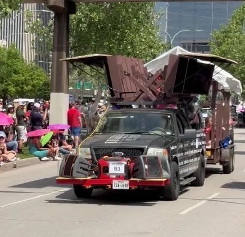 ---- You've seen this 2005 Ford pick-up as This Is Not An Art Car and Trump Lies. This is the third time around for Truck E Oke (pronounced like karaoke). With audio equipment provided by Ron Auchter Sound and Vision Productions along with 4 TVs and a friend's trailer makes this a complete, one-of-a-kind, mobile karaoke party! Join the party and sing along with the Truck E Oke crew!---- I'm just a guy with an old truck. My "inspiration"? All the other entries over the years. What makes me most excited? The party(s), the spectacle, the smiling faces and having my friends participating along with me to make Truck E Oke memorable.