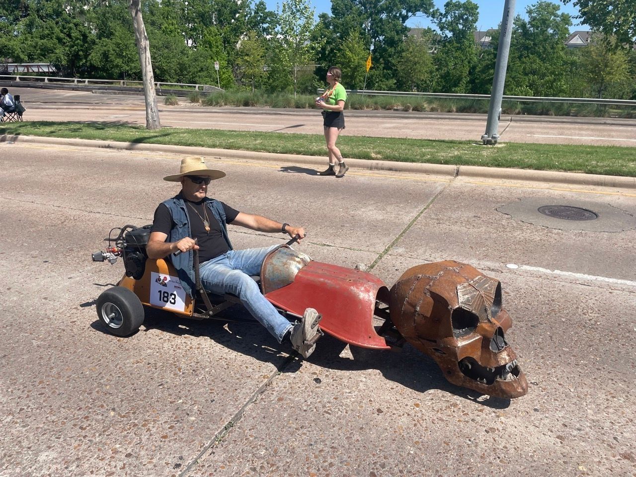 Artcar-1st MetaCarSkull-2016---- SKULBARROW. SON OF META. REPRESENTING THE TEXAS WHEELBARROW ASSOCIATION, ESTABLISHED 2013 Its mission is to take over the world, listen to heavy metal music and make wheelbarrows the future of transportation.---- SKULBARROW. SON OF META. REPRESENTING