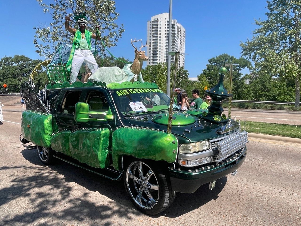 artcar-1st - 2019, 2nd 2018-Hermesillac/ school cars 1st 2015,16, 2nd 2014/ Shelleys Truck artcar 1st 2024---- Created as a result of Art Car Fever, where greens have been inversely applied to creatives in areas near and far, to bear witness to the the dimensions of the greener grasses of the other sides of the tesseract.---- Art Car Fever is Real