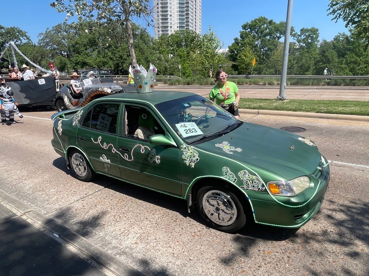 ---- Peewee is green Toyota Corolla decked out with mosaic frogs. It is still a work in progress but I am super excited to be participating in the parade this year. I love frogs and just thought they would look awesome on my little green car.---- I have been rolling with the Zebras my entire life. Art car weekend has always been a big holiday for me, almost like Christmas is for some people. I love art and I love the Houston art car community and I am just so happy to be apart of it.