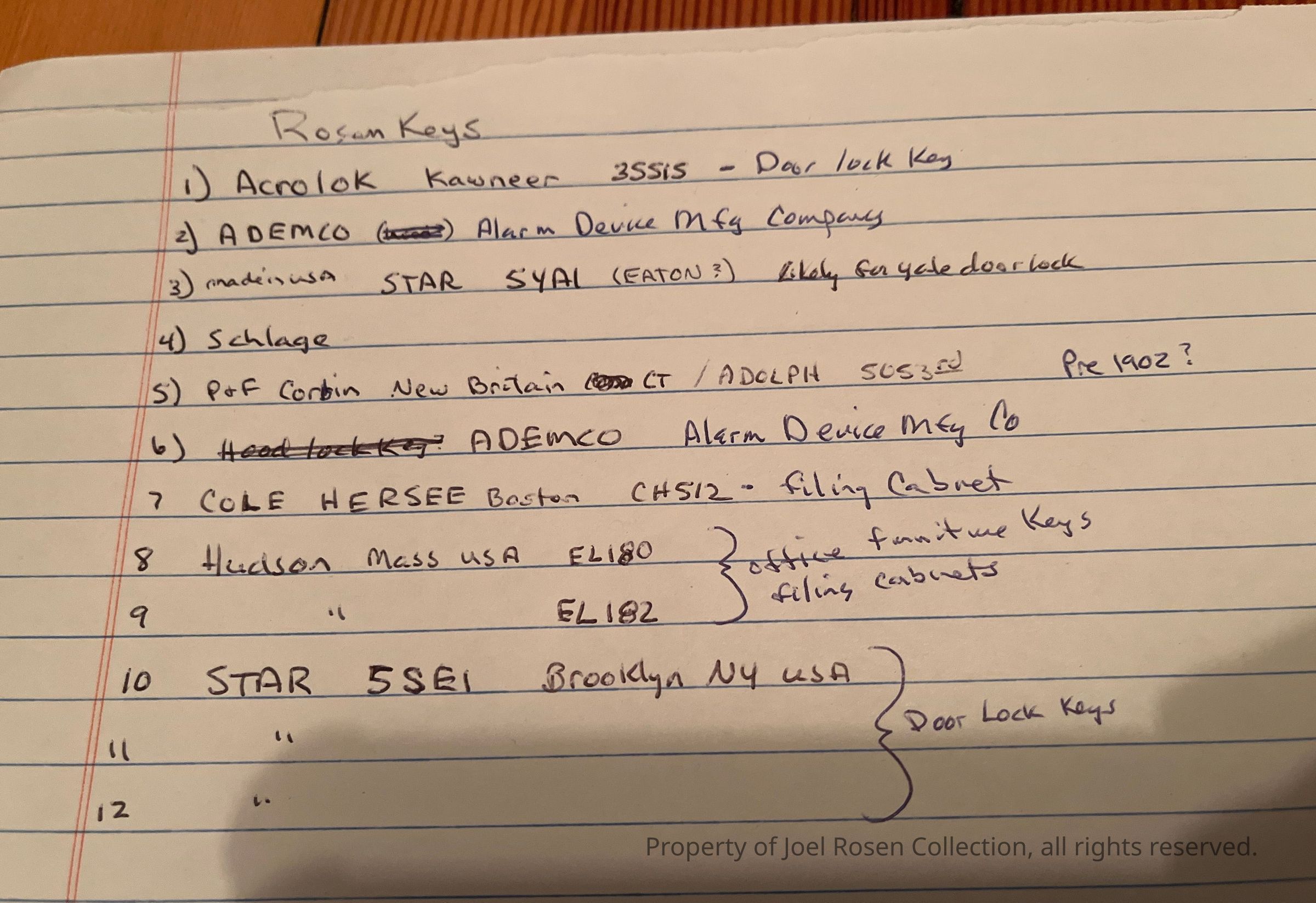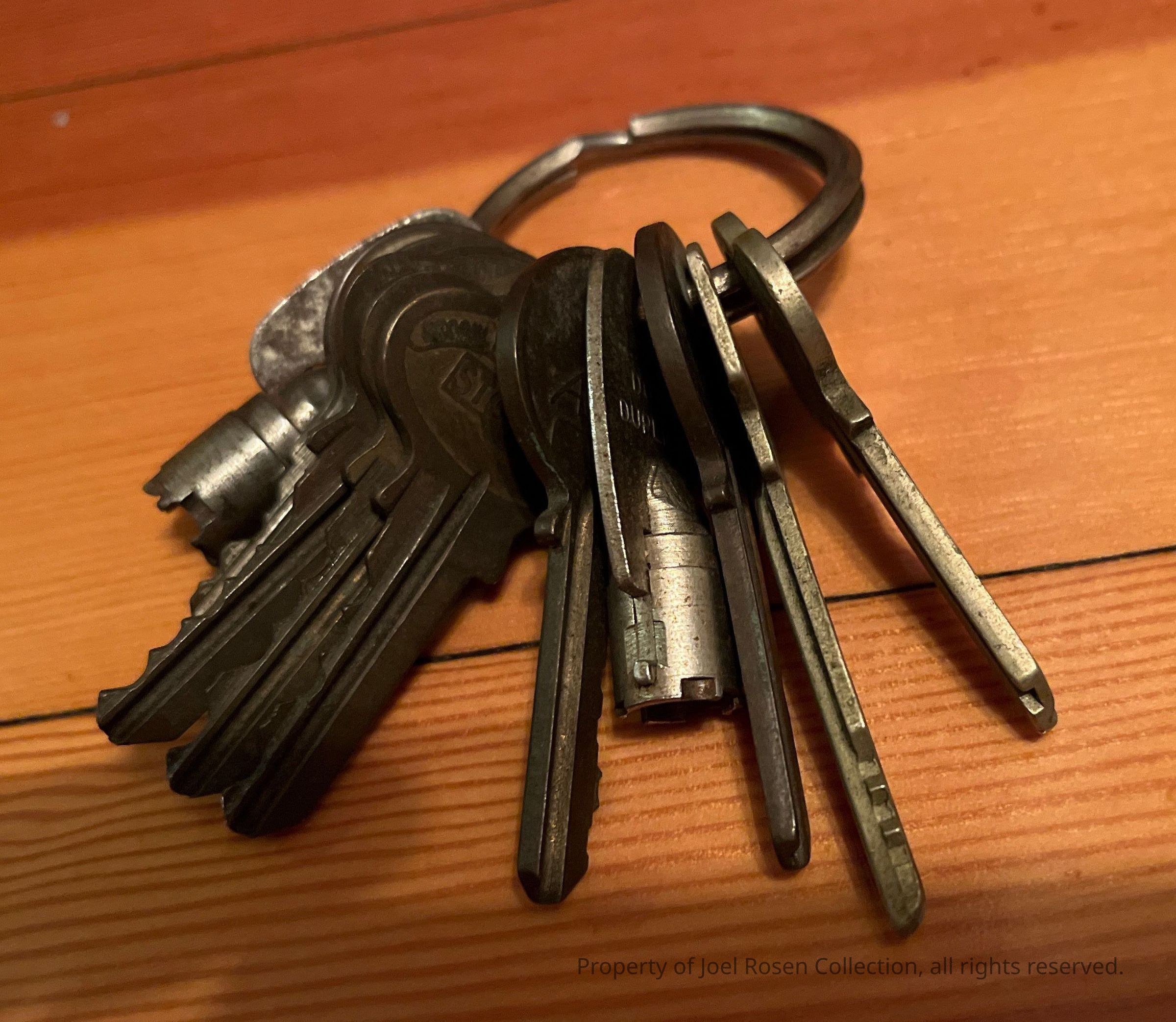 The keys appear to be for the shop doors, security system, and office furniture. The older keys were likely for the original Motion building.Created By