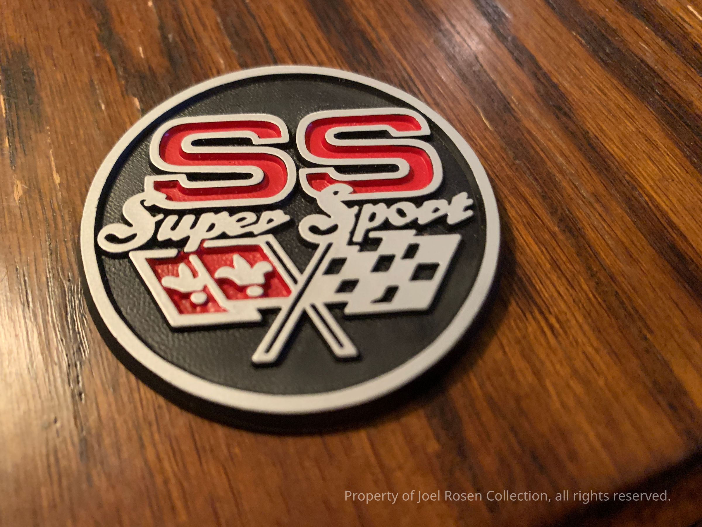 Round SS emblem with Crossflags model unknown possibly a door panel emblem 13/4"- 1 set of 2Created By