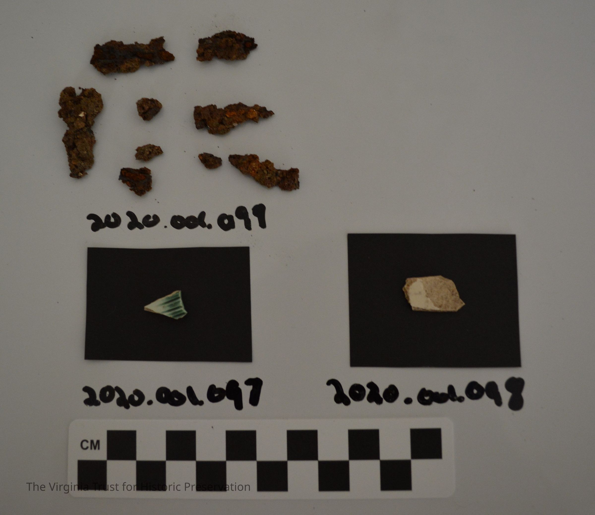 A piece of shell-edge pearlware-green with grooves and stripes on one side Archaeology collection gifted to the Alexandria Archaeology Museum on July 28, 2022.