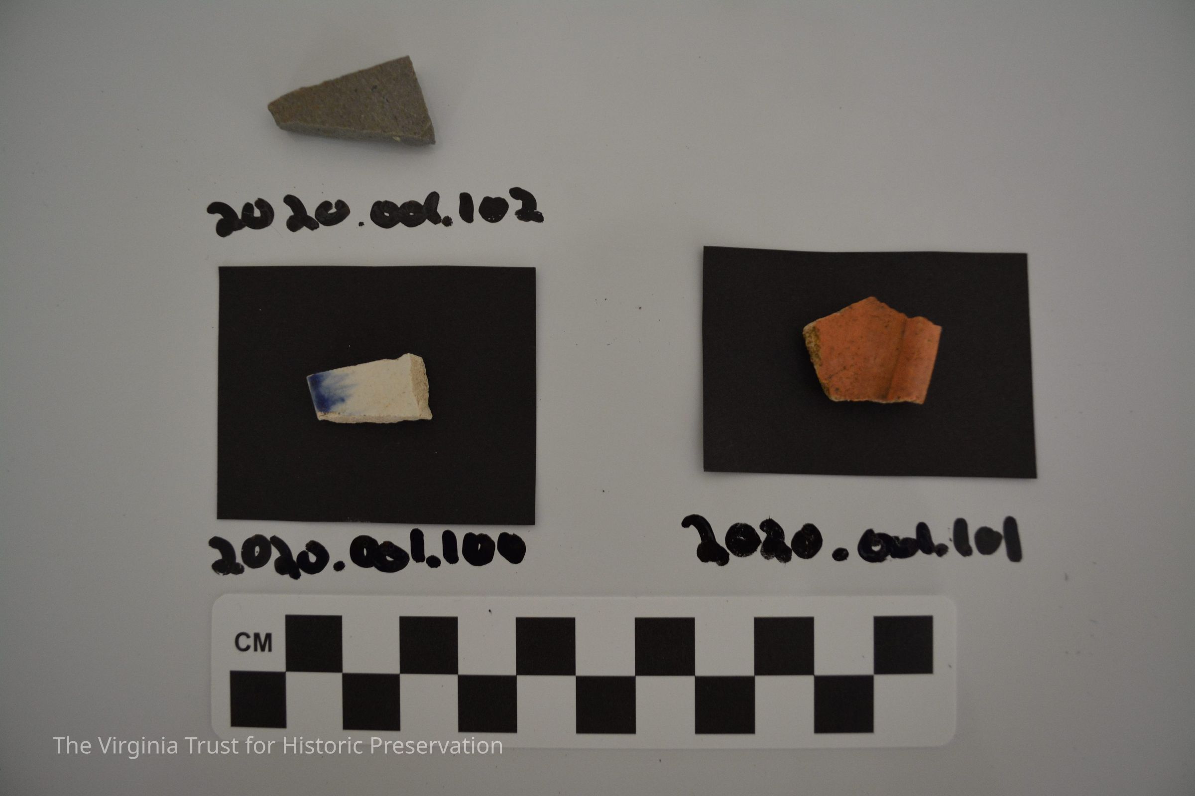 A piece of gray salt glazed stoneware with albany type slip Archaeology collection gifted to the Alexandria Archaeology Museum on July 28, 2022.
