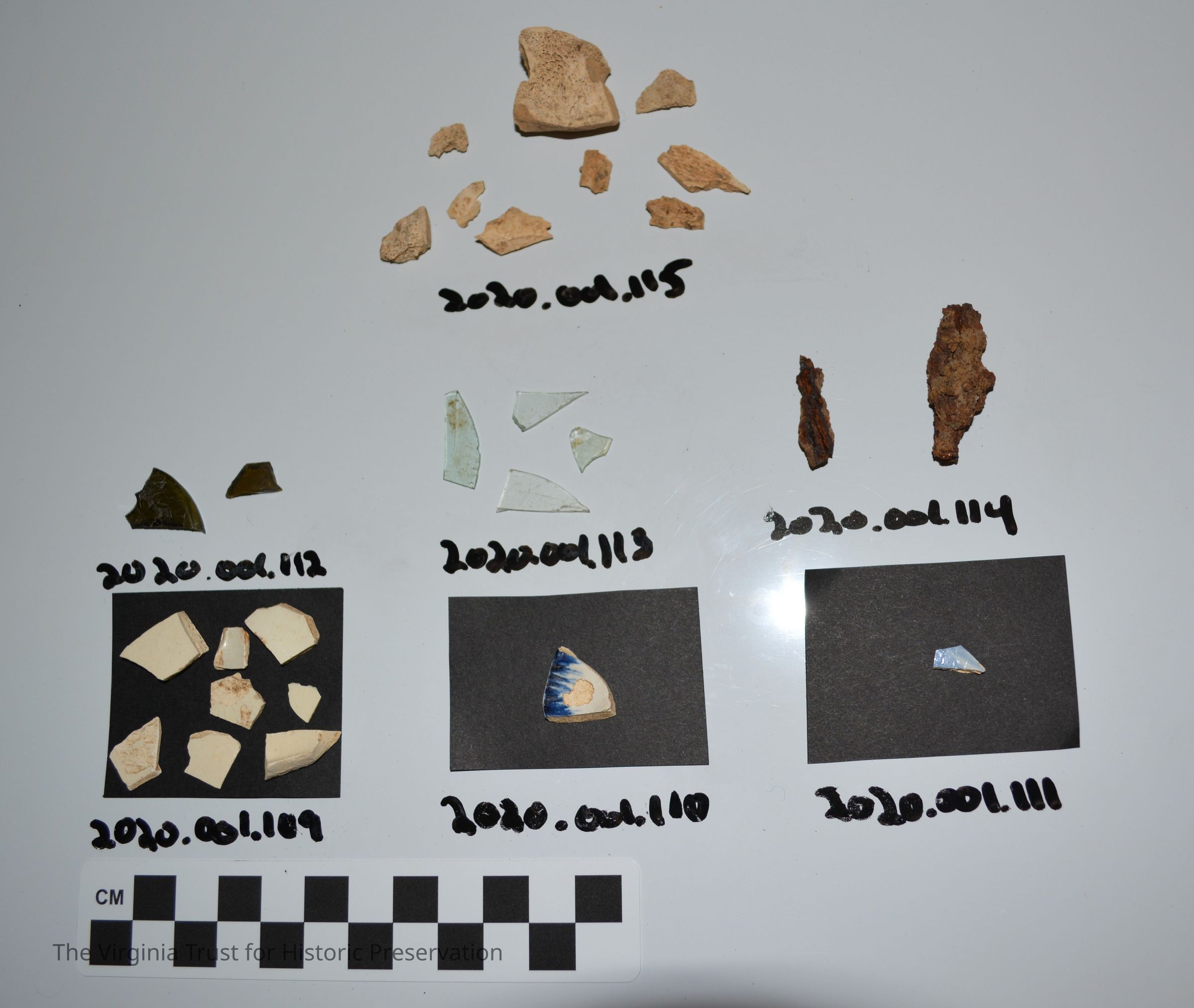 A piece of underglaze handpainted pearlware-white on one side, blue stripes on the other Archaeology collection gifted to the Alexandria Archaeology Museum on July 28, 2022.