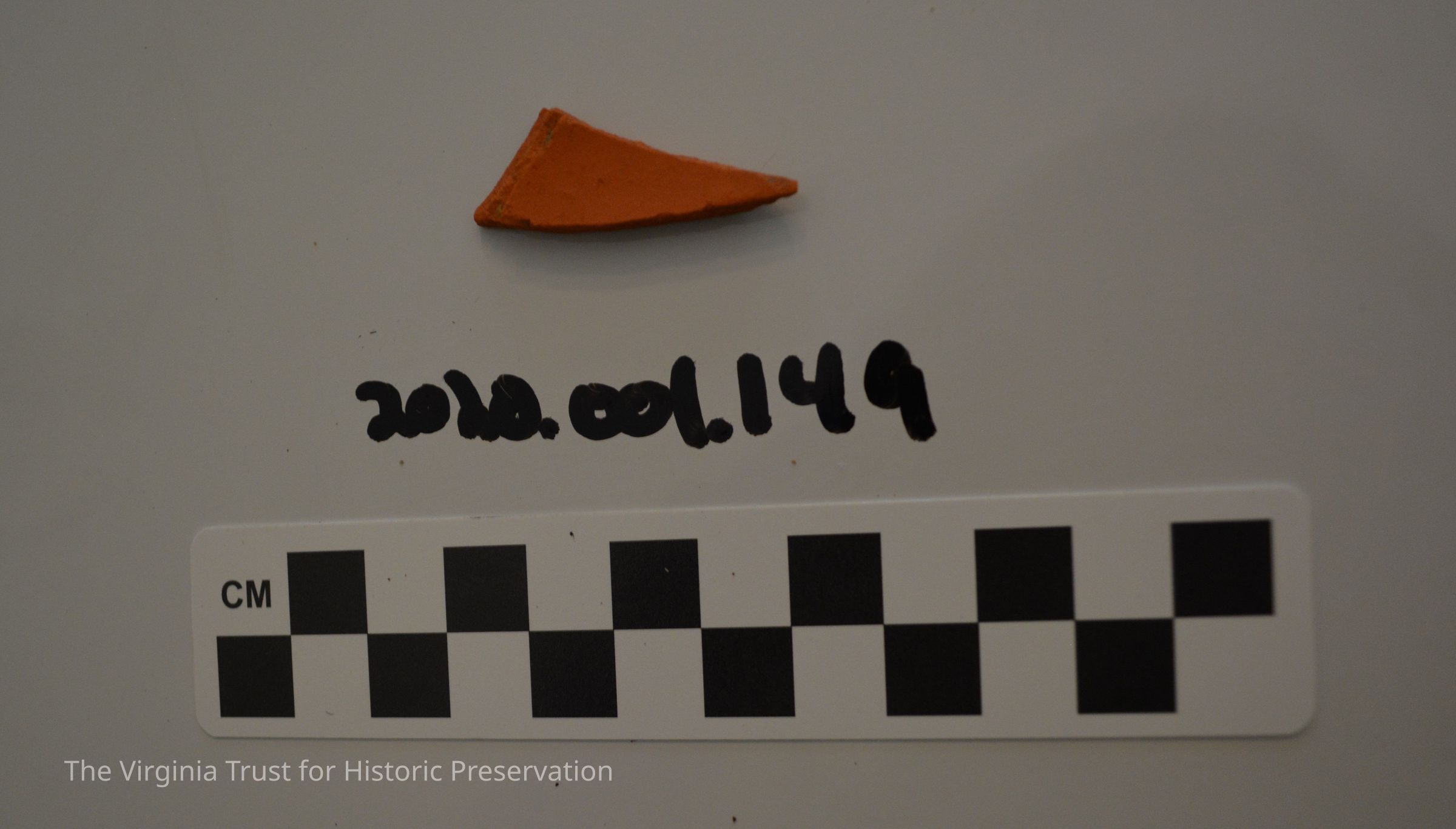 A piece of unglazed redware Archaeology collection gifted to the Alexandria Archaeology Museum on July 28, 2022.