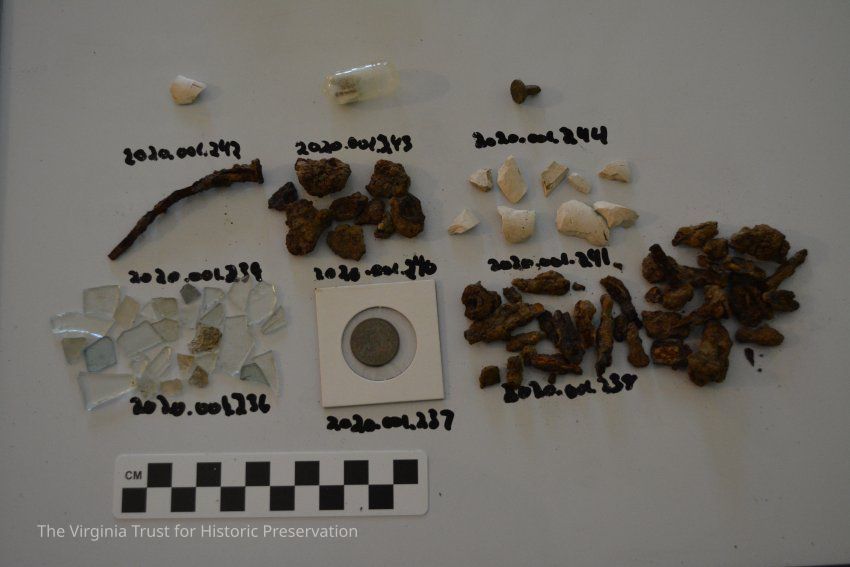 Twenty-eight pieces of glass that range from clear to light blue to green Archaeology collection gifted to the Alexandria Archaeology Museum on July 28, 2022.