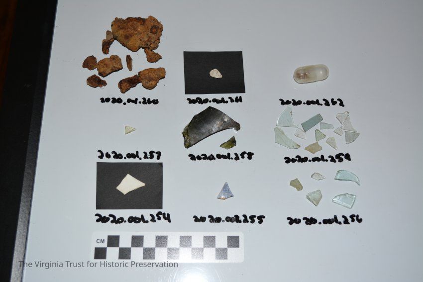 Twelve pieces of light blue, clear, and green glass Archaeology collection gifted to the Alexandria Archaeology Museum on July 28, 2022.