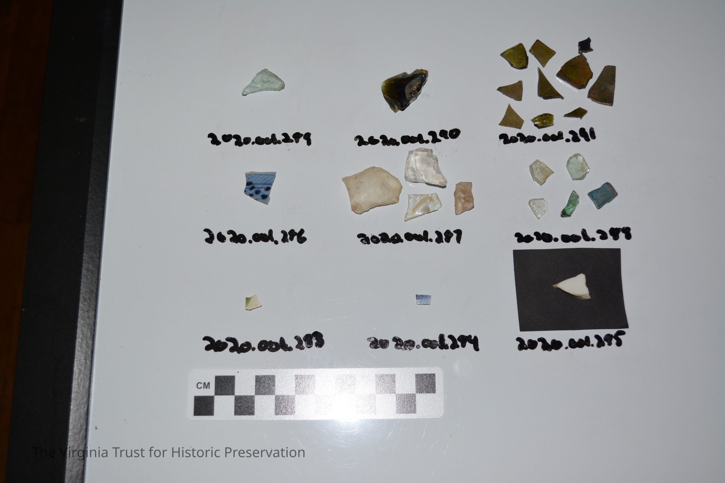 Four pieces of glass from an unidentified bottle/jar body Archaeology collection gifted to the Alexandria Archaeology Museum on July 28, 2022.