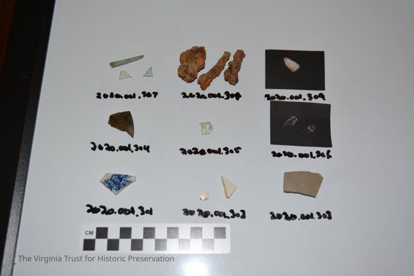 Three pieces of glass-one clear and two ligjt blue Archaeology collection gifted to the Alexandria Archaeology Museum on July 28, 2022.