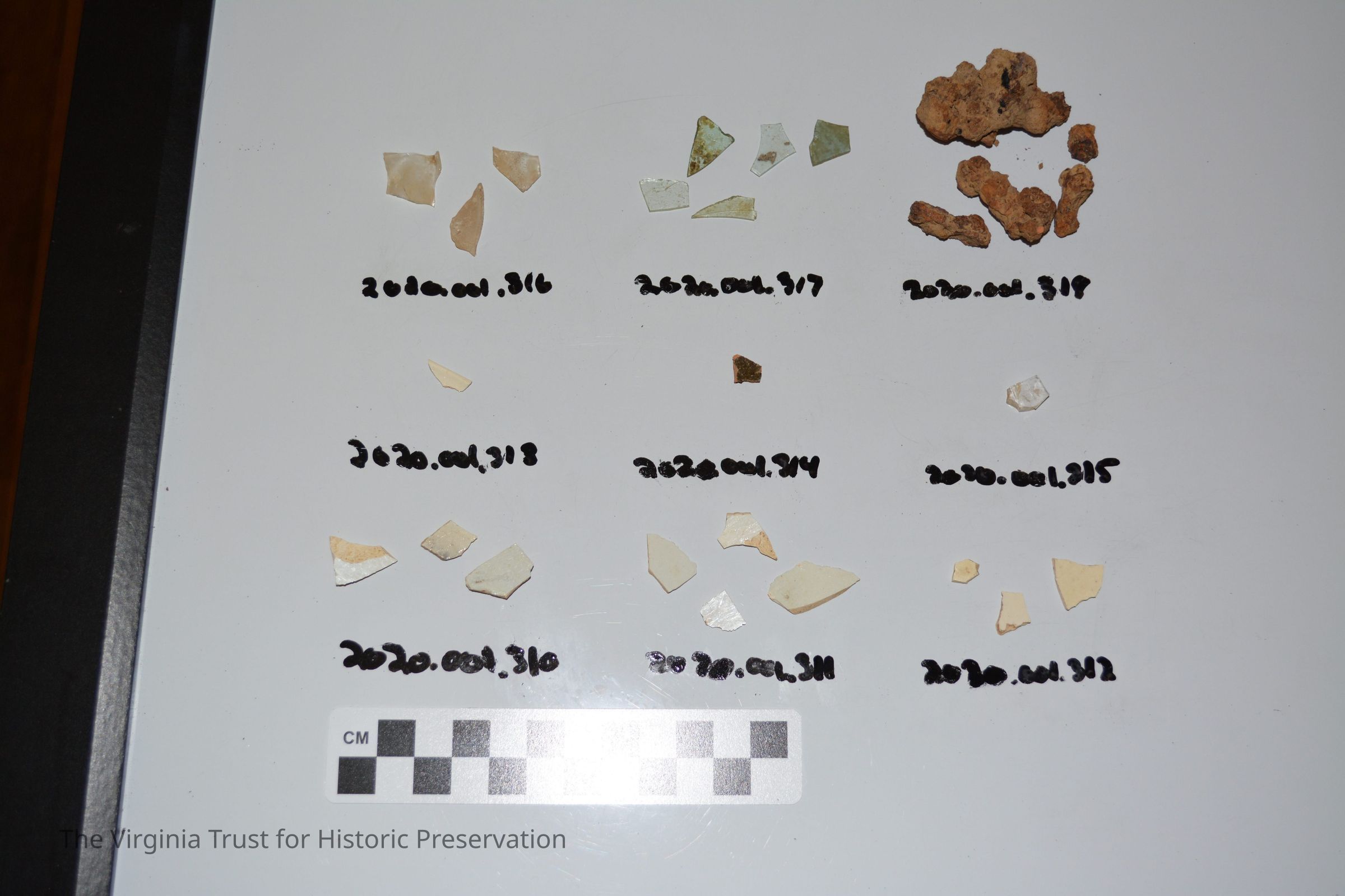 Three pieces of melted translusent unidentified curved/vessel glass Archaeology collection gifted to the Alexandria Archaeology Museum on July 28, 2022.