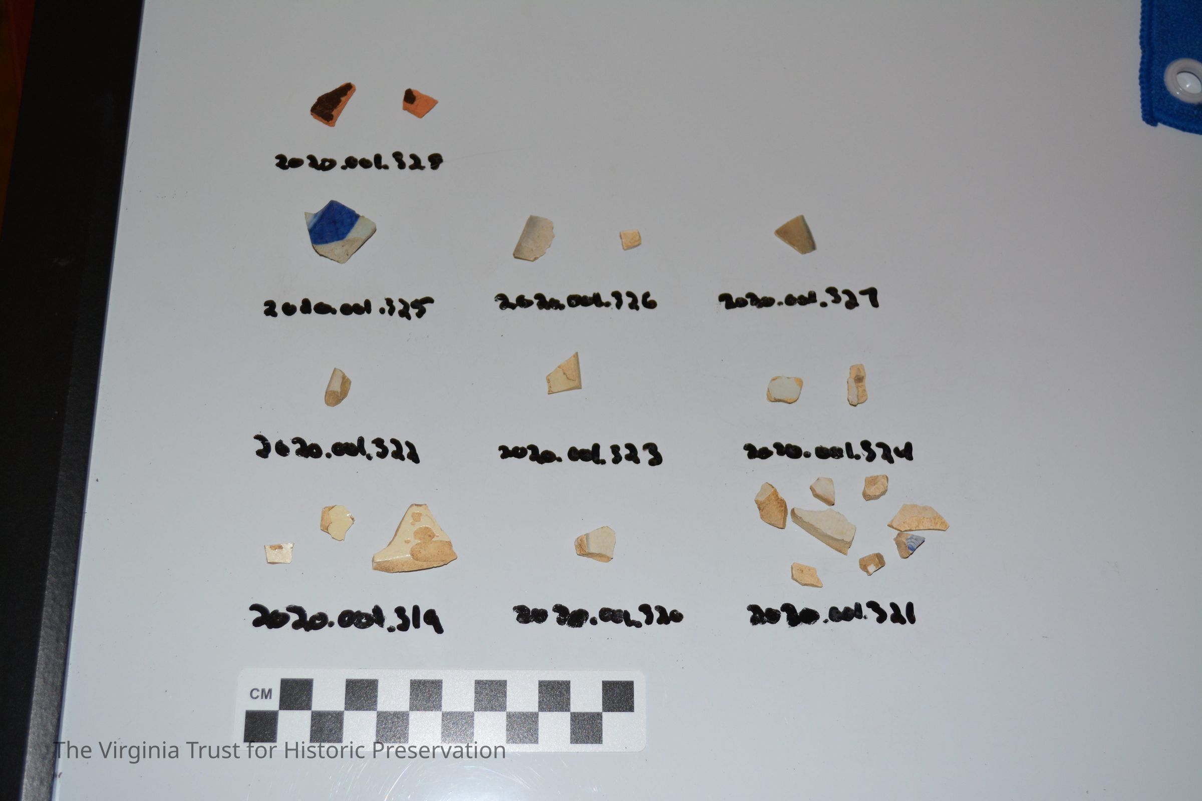 One piece of white pearlware with light blue on one edge Archaeology collection gifted to the Alexandria Archaeology Museum on July 28, 2022.