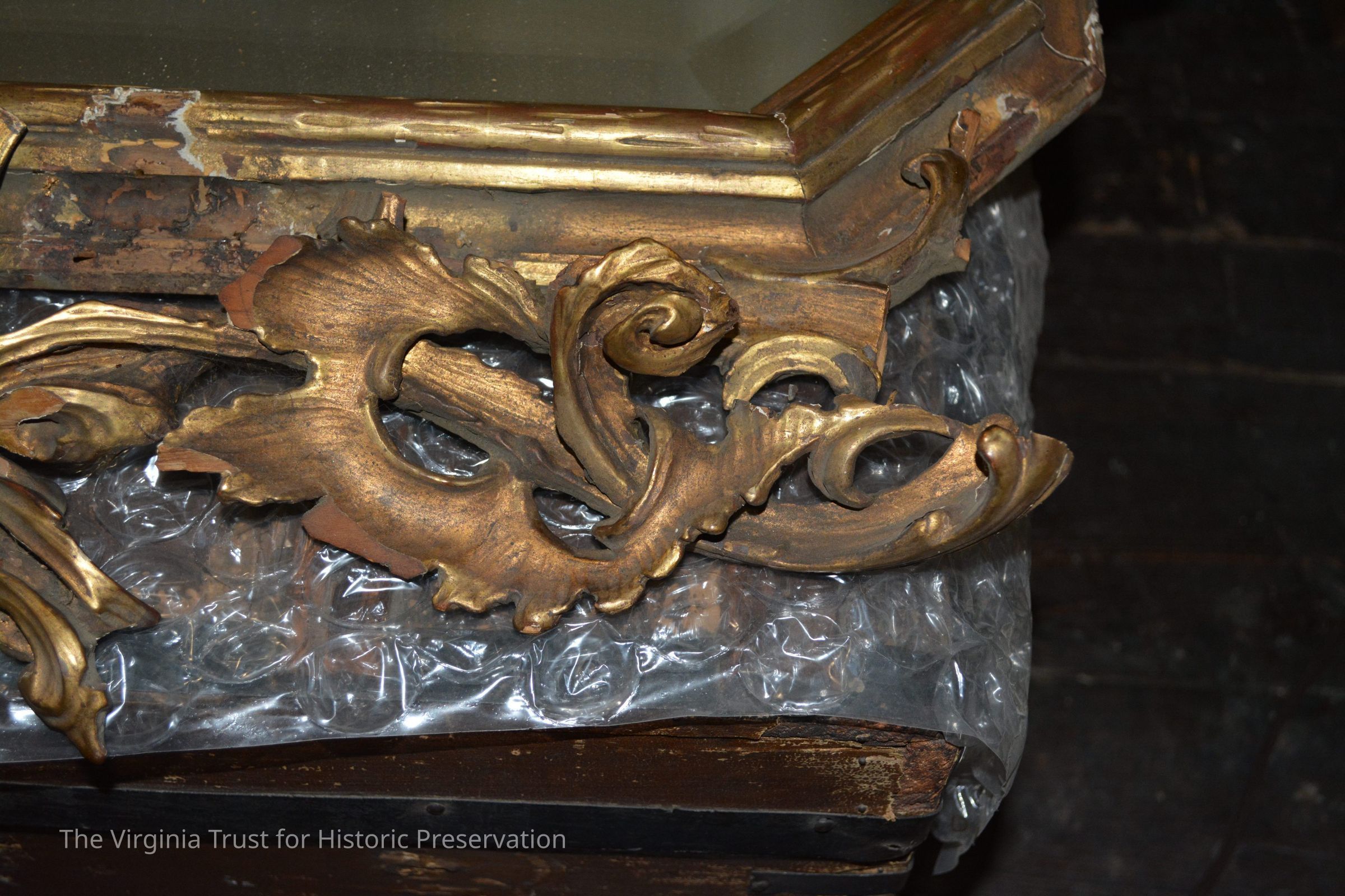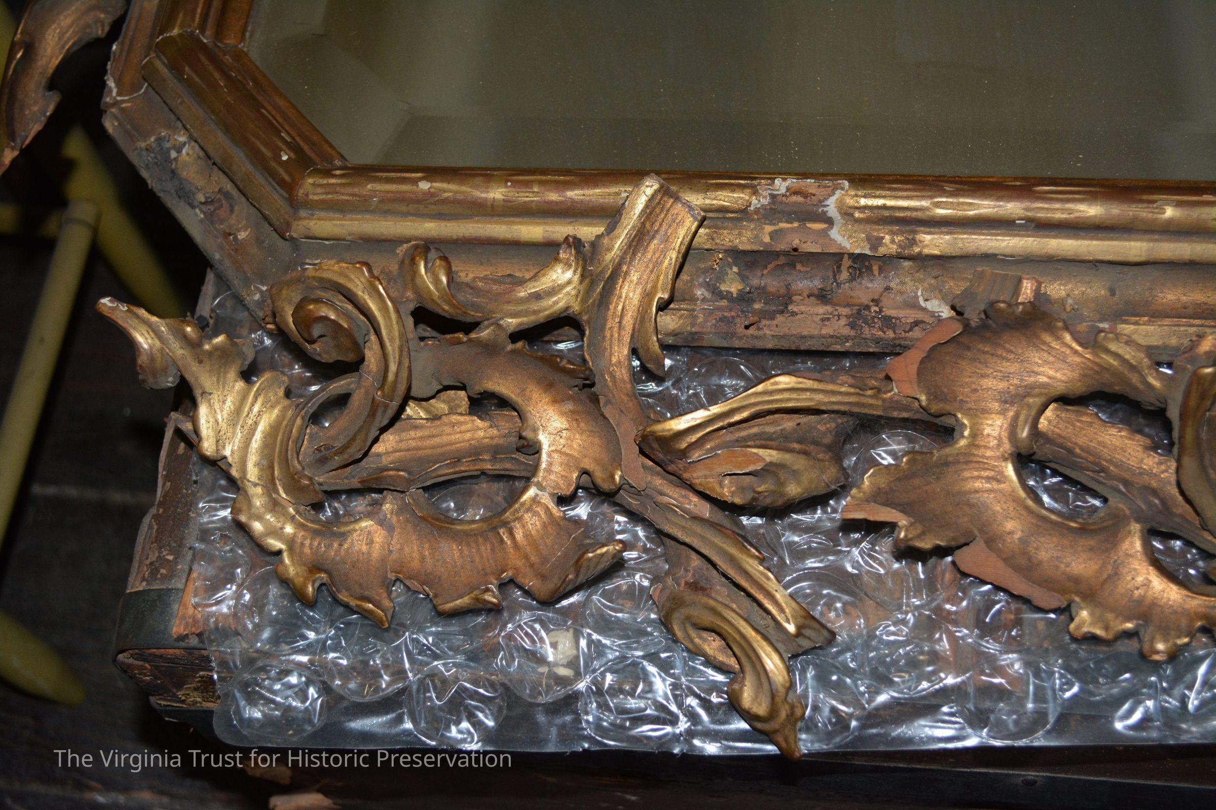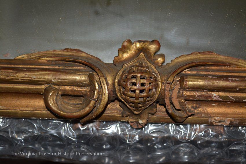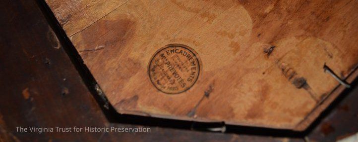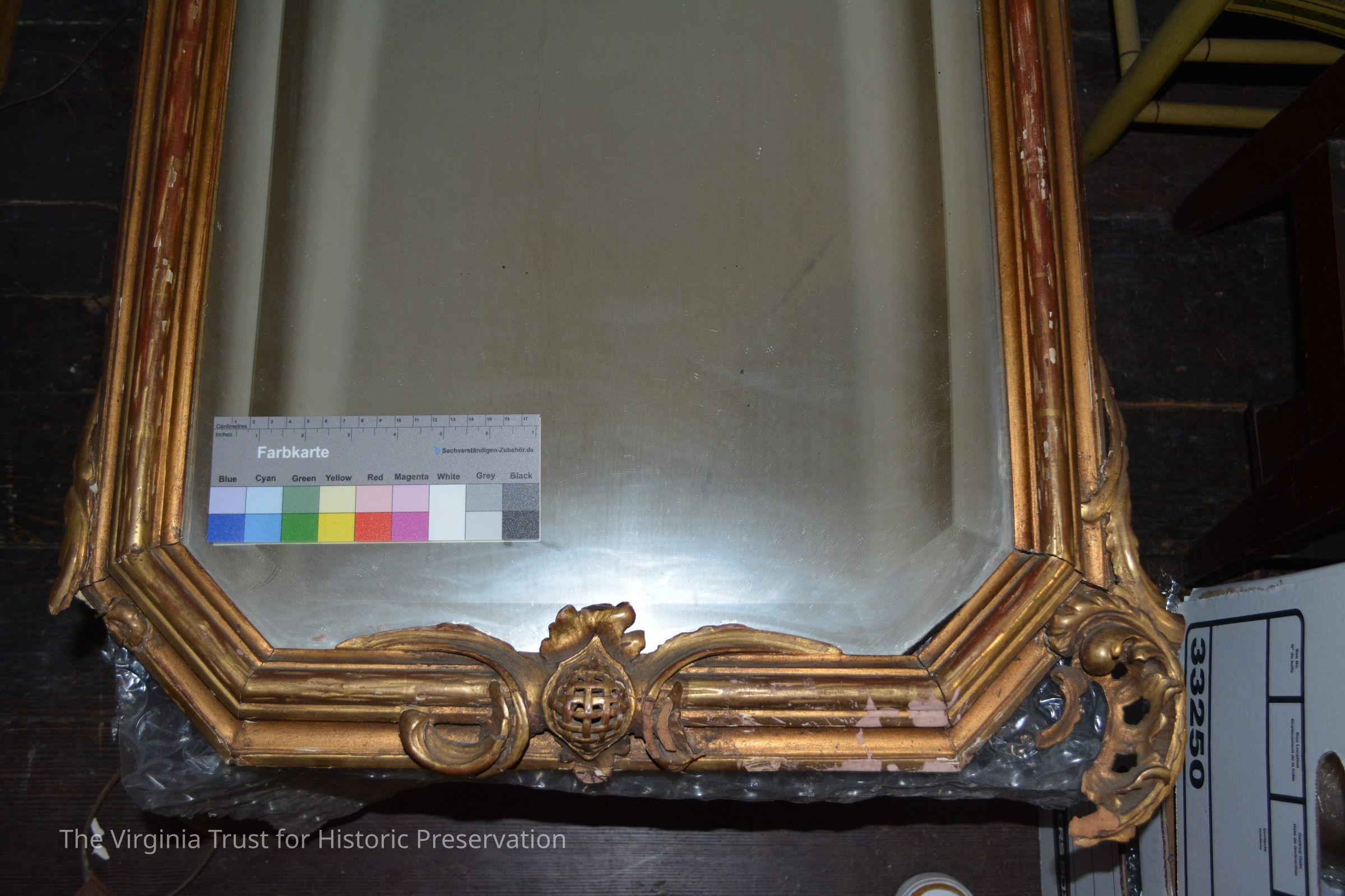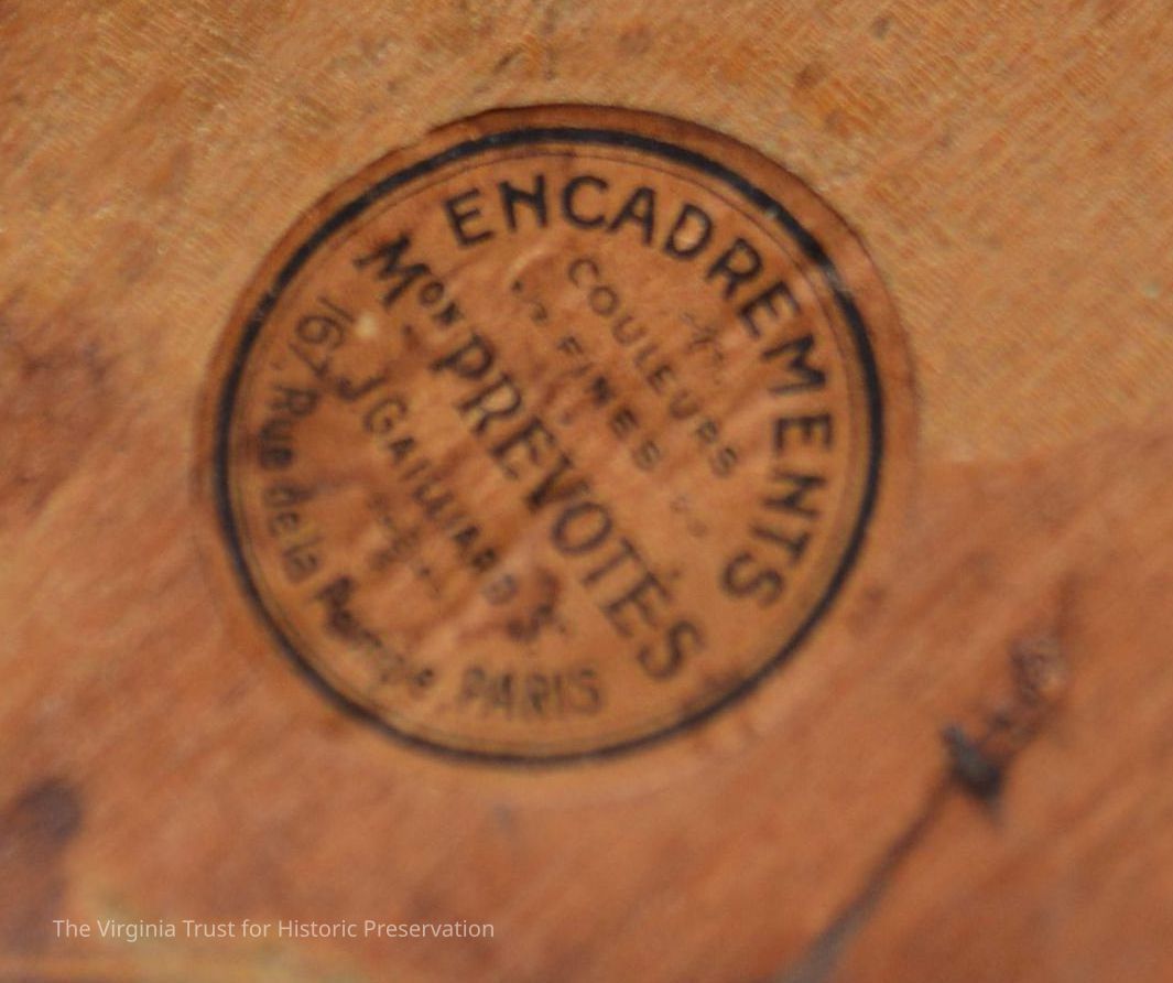 Maker's mark ("J. Gailliard S.") is a circular stamp located on the back of the mirror. Also attached on the back is what appears to be a newspaper clipping stapled with names and addresses. Some identified words are "Howard University", "Thursday, September", and a last name of "Calvert, Ph.D.".Dimensions