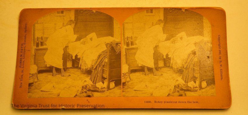 Stereograph titled "11460 Betsy Planking Down the Law". 1897.