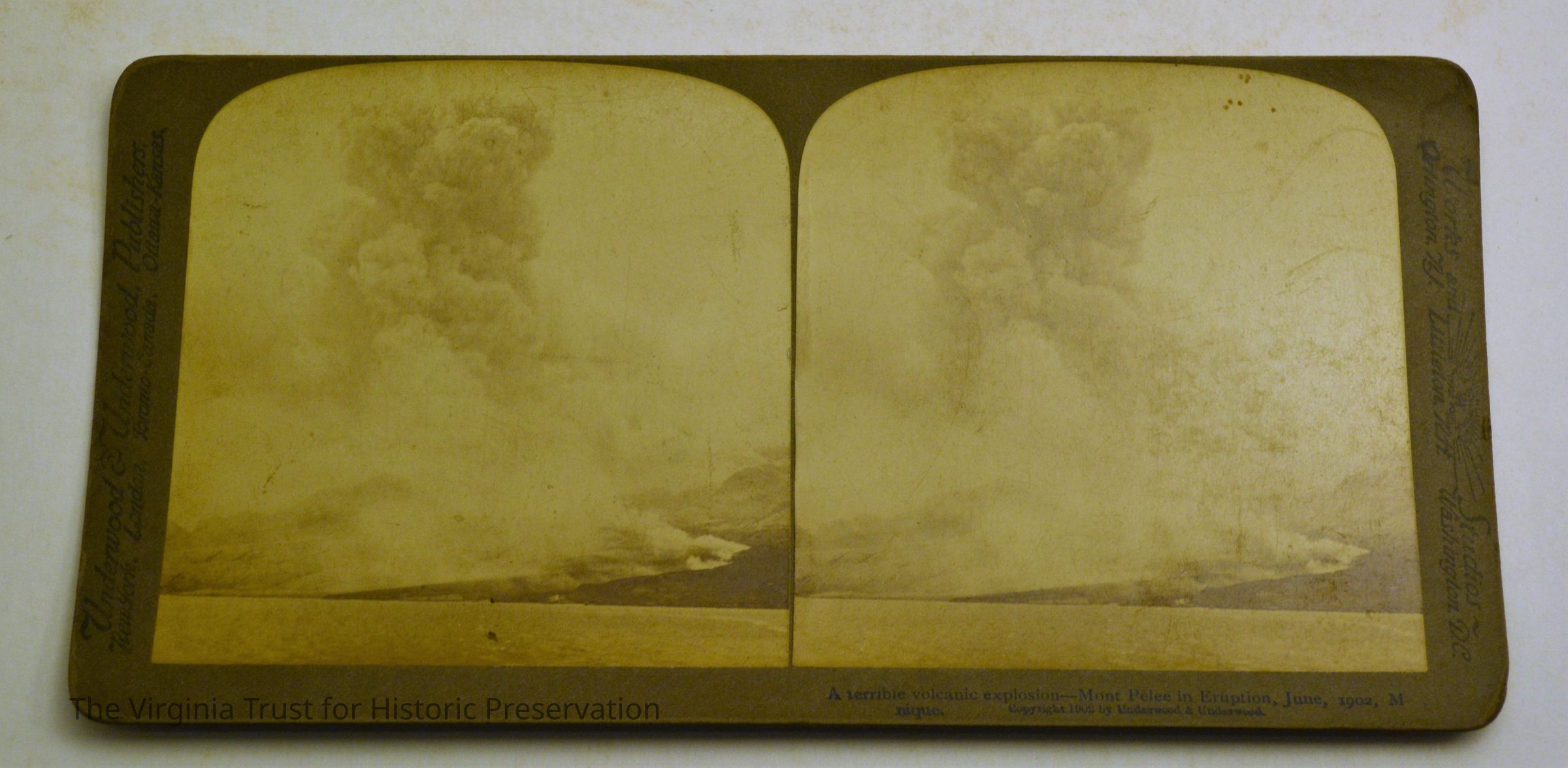 Copywritten 1902. Stereograph titled "A terrible volcanic explosion- Mount Pole in eruption, June 1902".