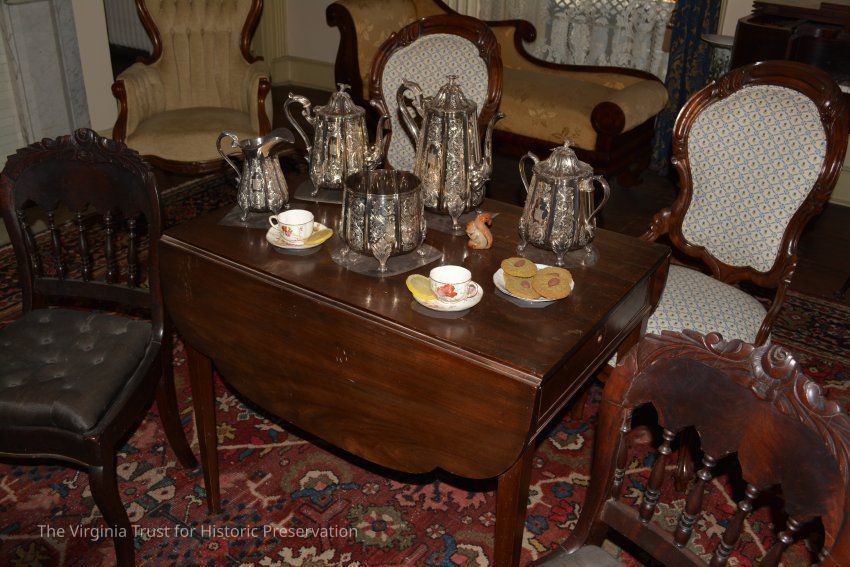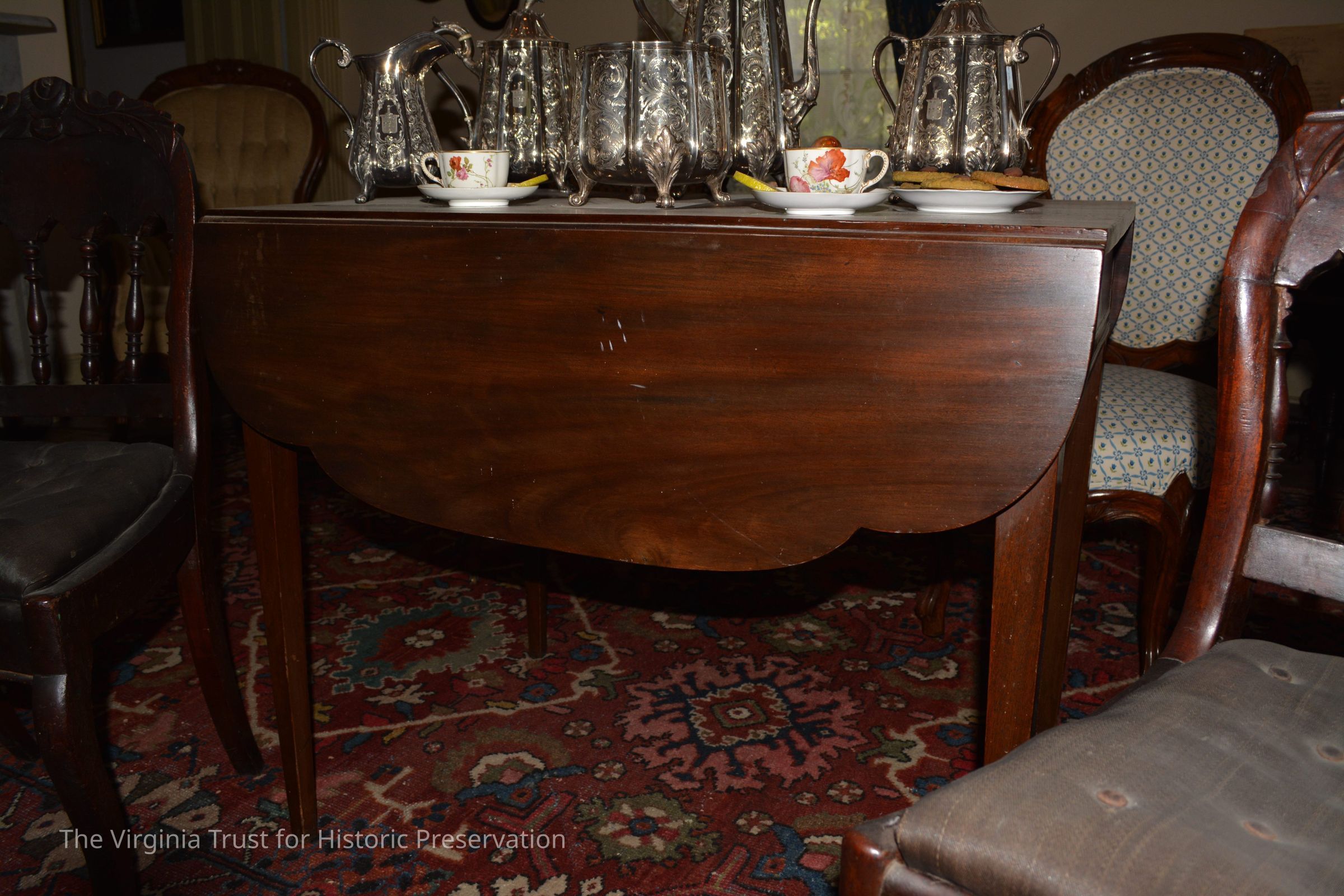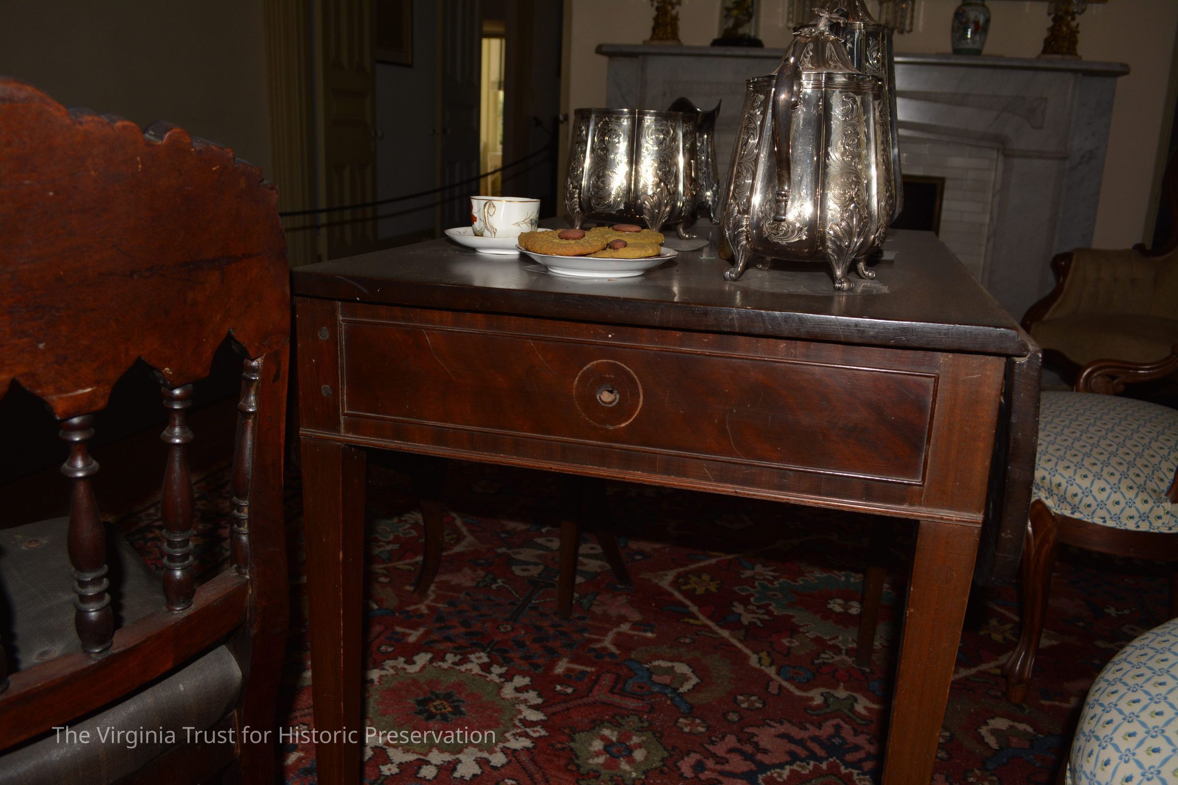 Small Pembroke type table, drop leaf. One drawer knob is missing.
