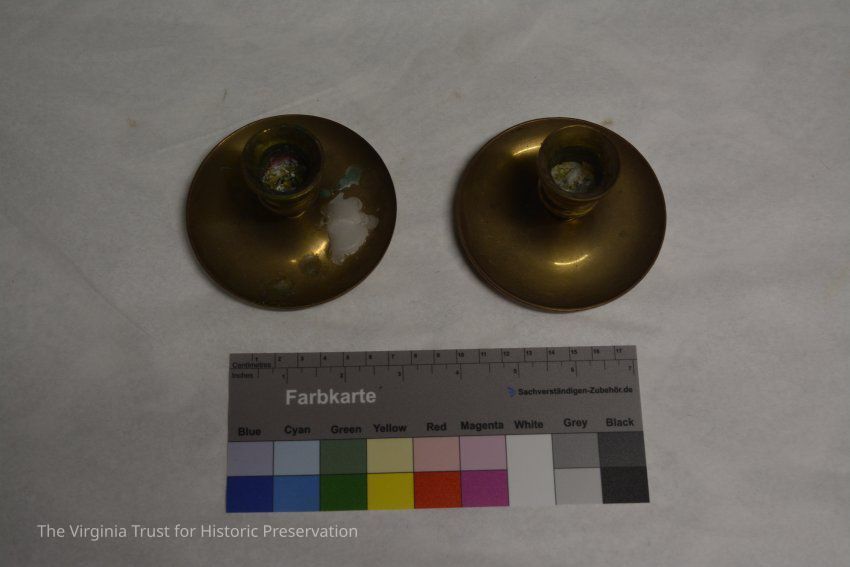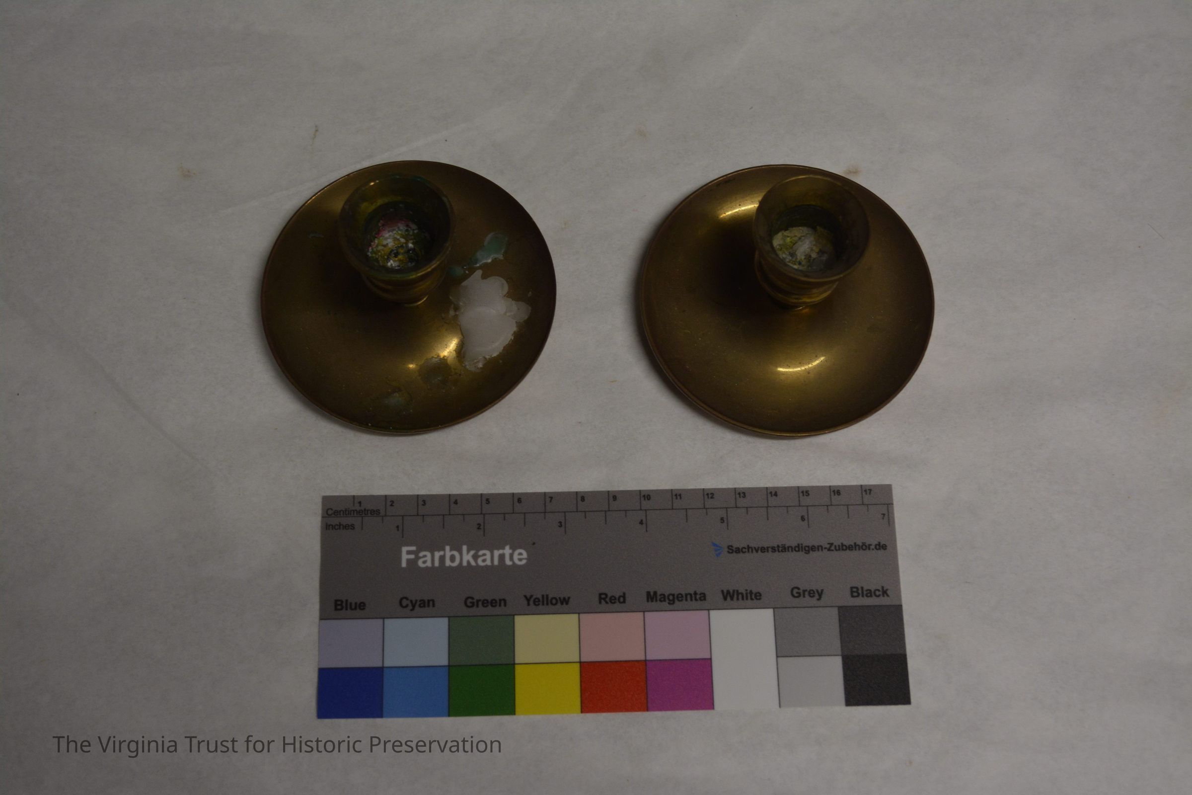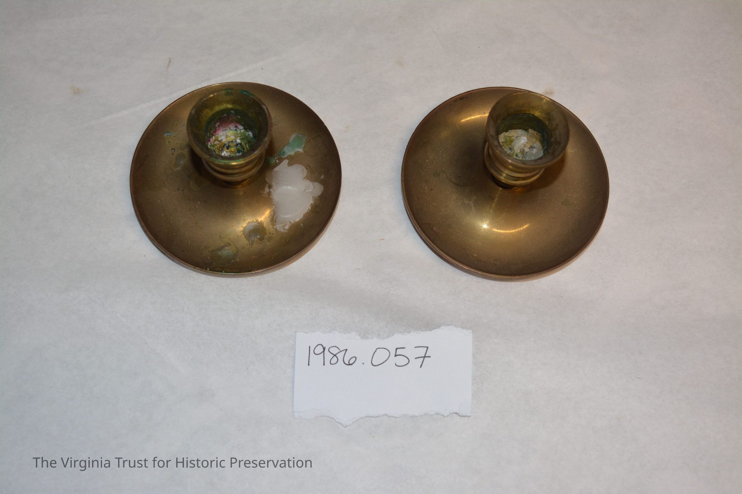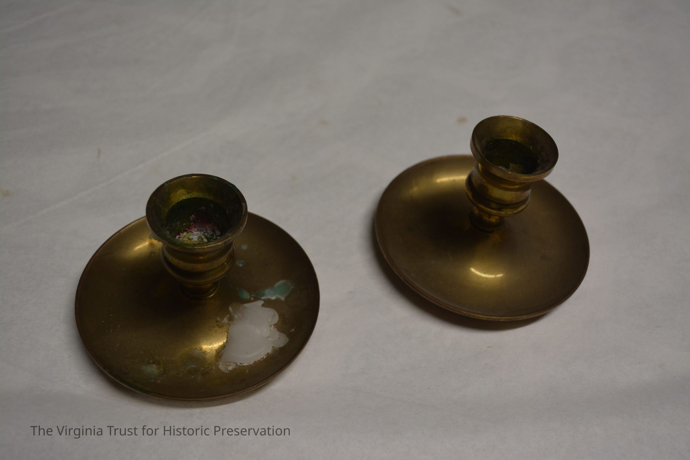 Pair of small brass candlesticks. Bottoms marked with "W."