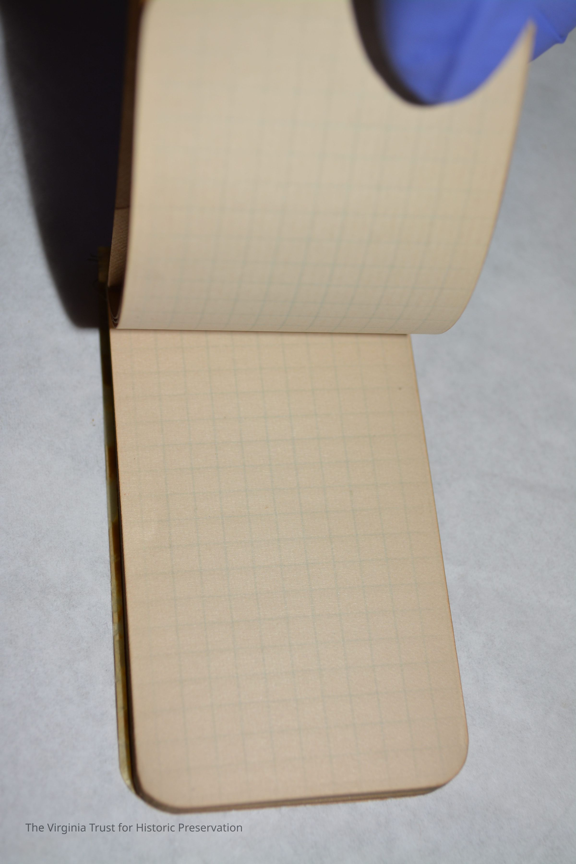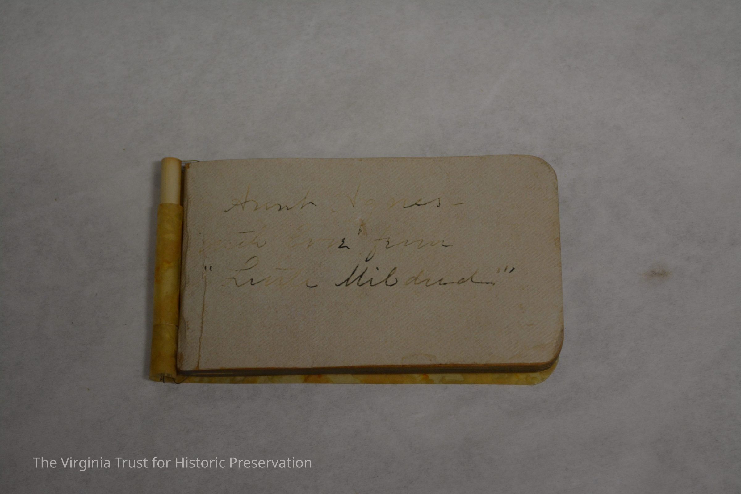 Small tablet in clear binding and silver trim. Marked "Aunt Agnes with love from 'Little Mildred'". Graph paper on inside.