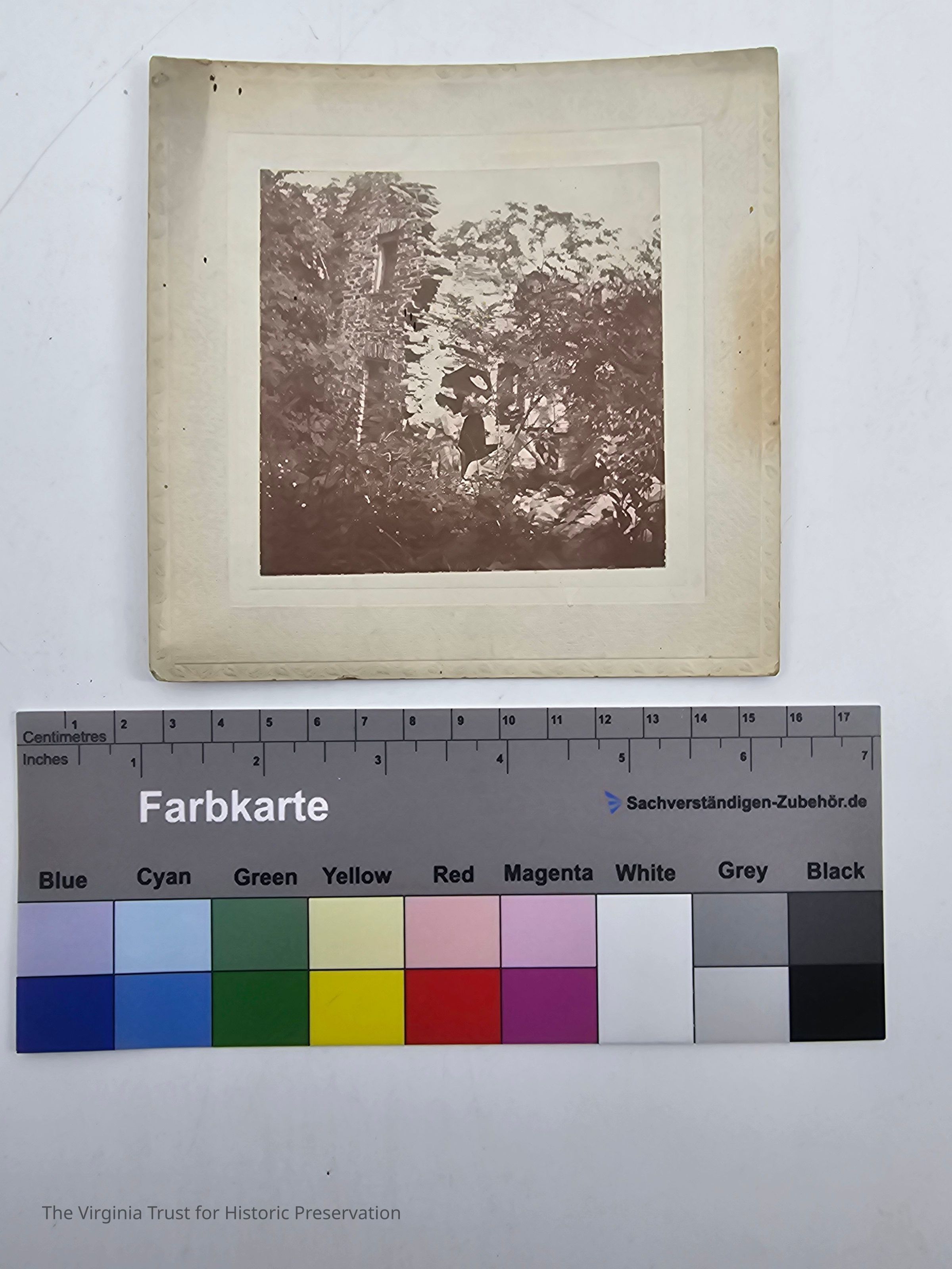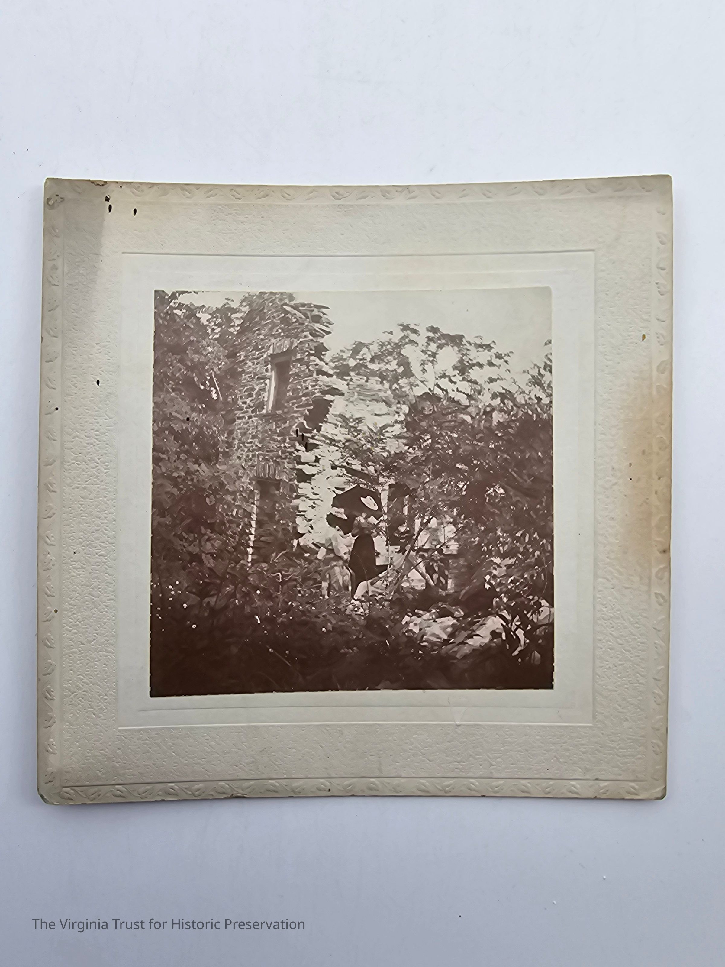 One of 24 theater programs, souvenirs, photos, and papers collected by Maude Downham. Three woman in landscape with ruins of a house behind them. "Roofless house".
