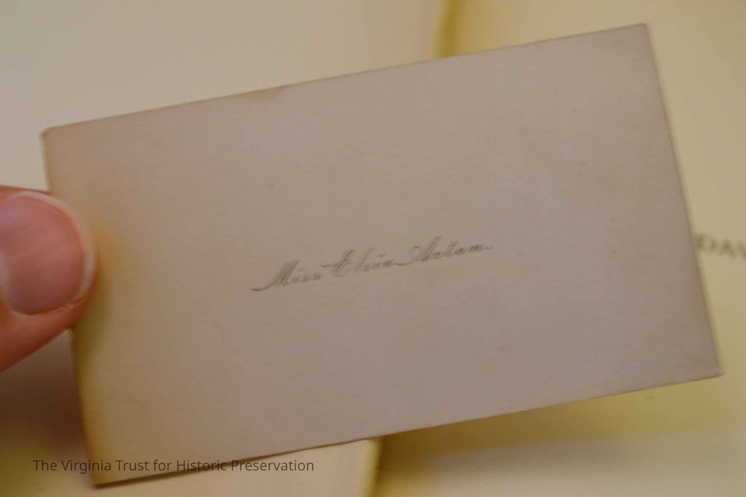 Calling card inside: "Miss Elsie Acton". Inscription on cover page reads "Maude Downham, Alexandria Virginia"