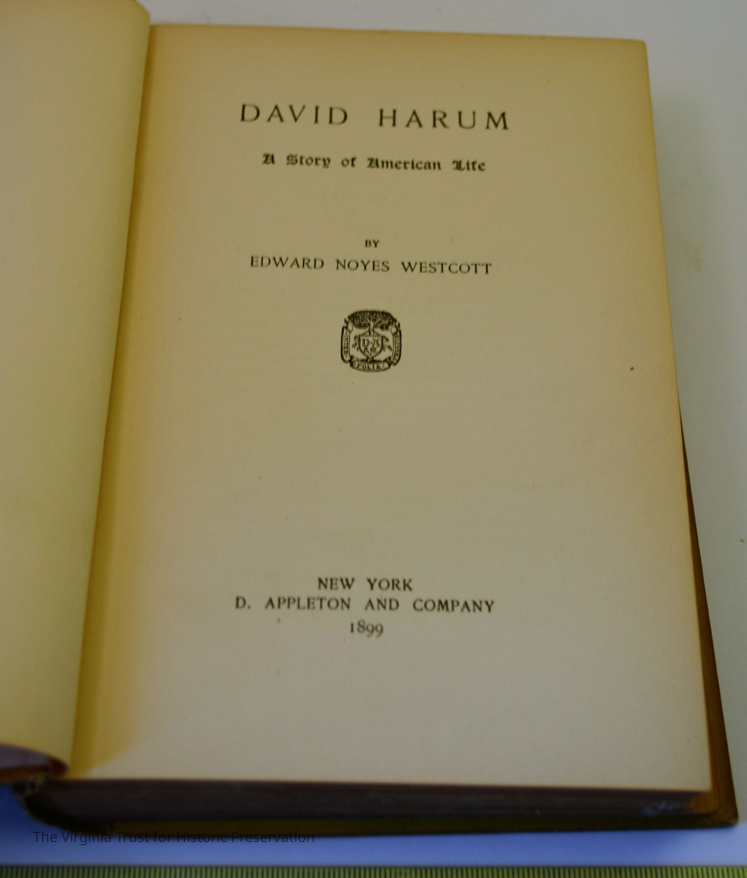 "David Harum: A Story of American Life" by Edward Noyes Westcott. New York: D. Appleton and Company, 1899.