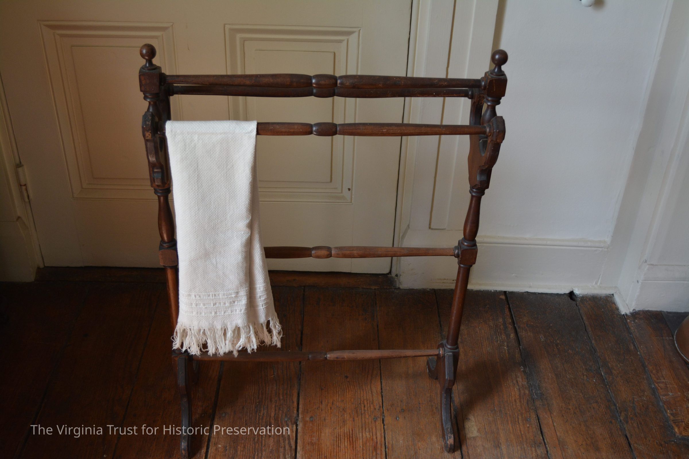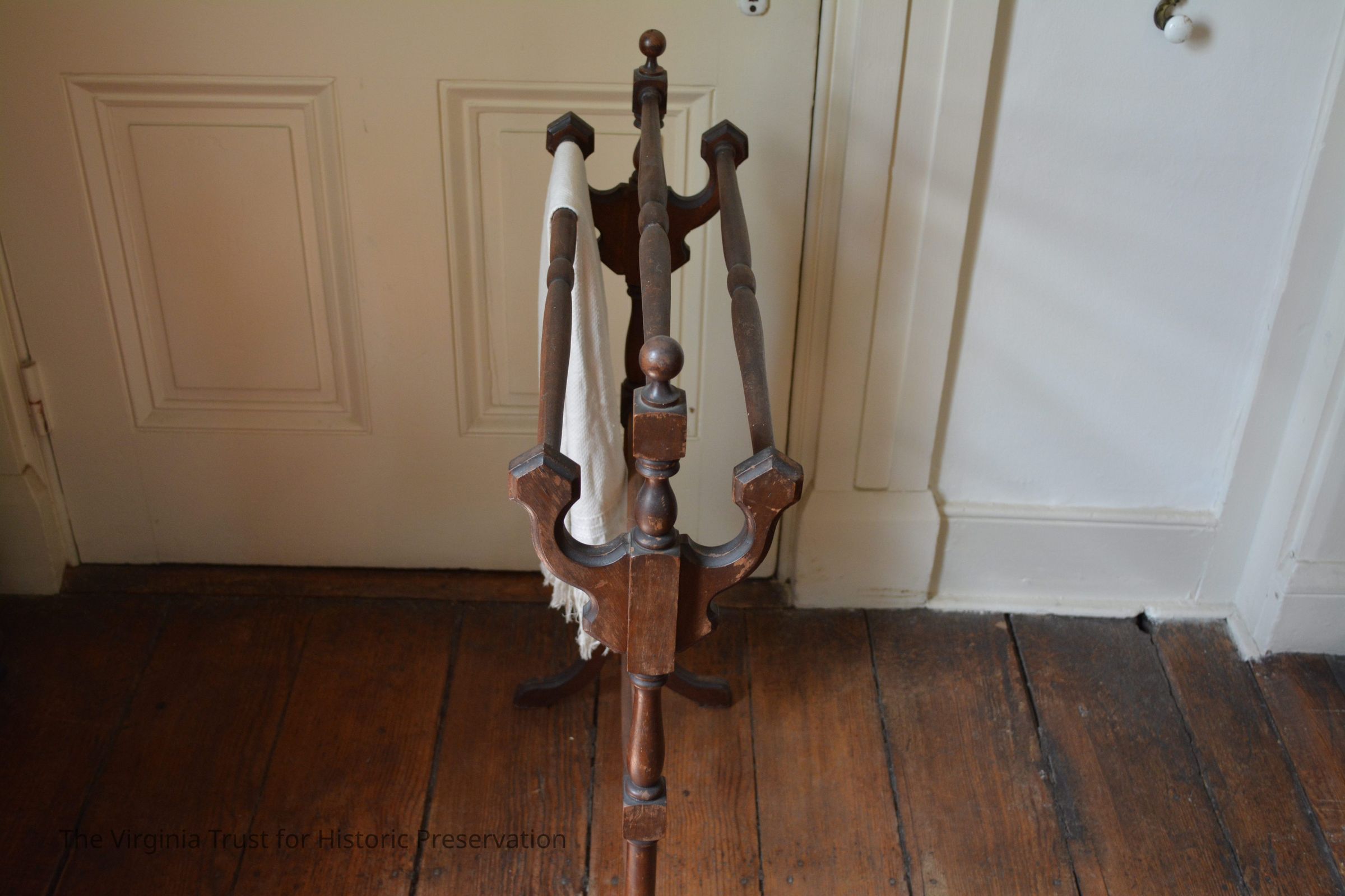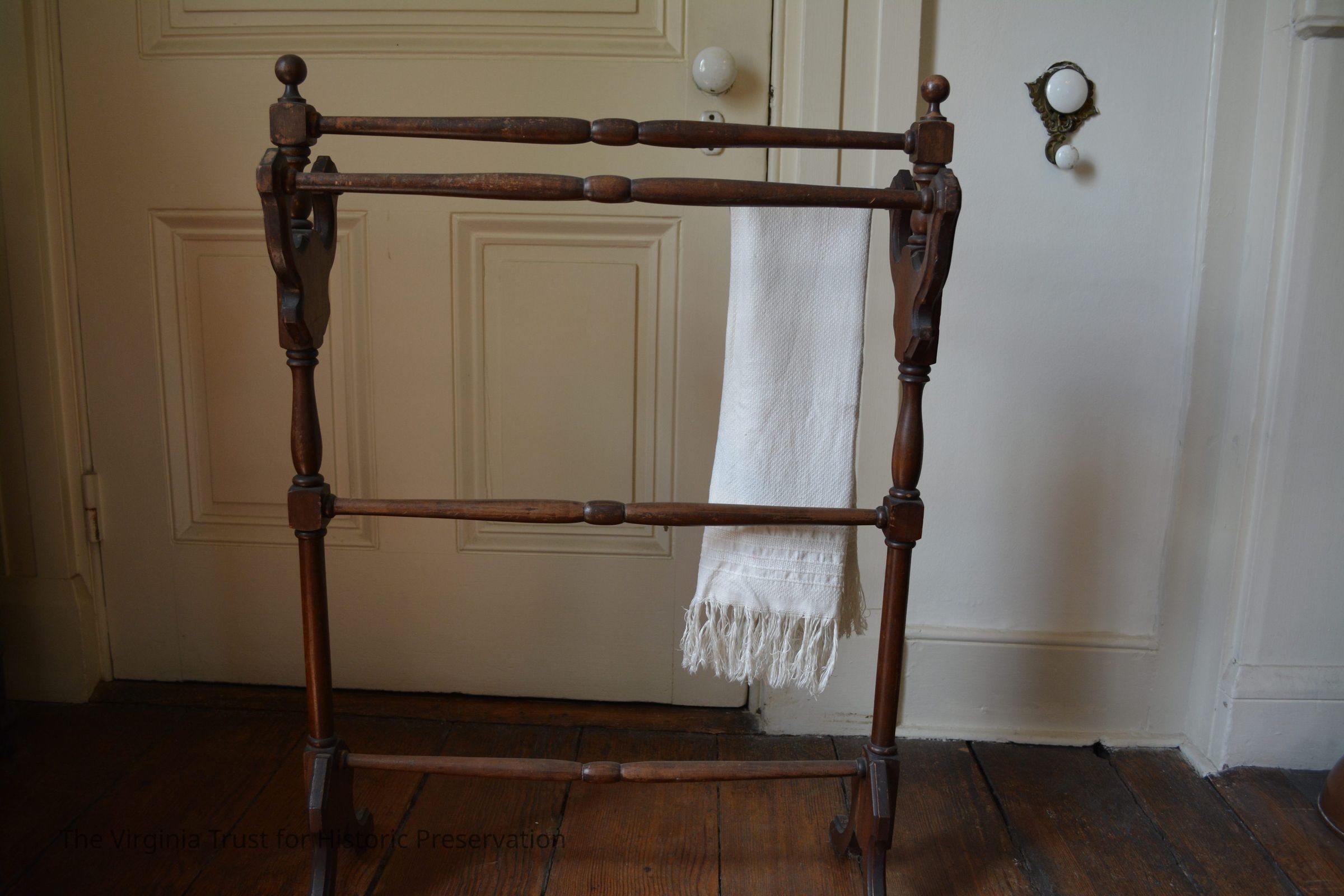 Wooden towel rack. 5 bars with finials on the top. Victorian era.