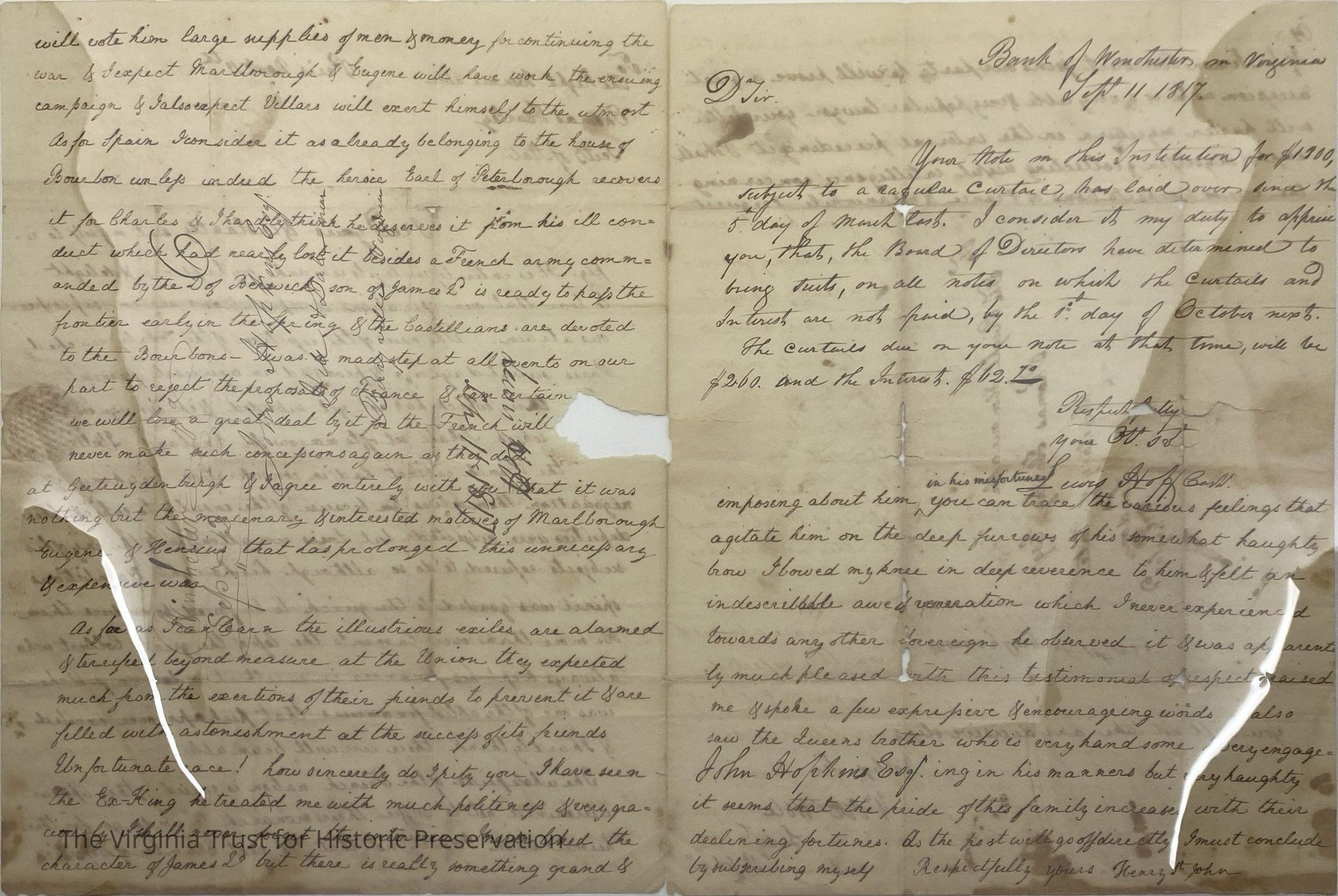 Handwritten letter from Henry St. John to Thomas Harley. Two pages double-sided. Dated September 11, 1817.