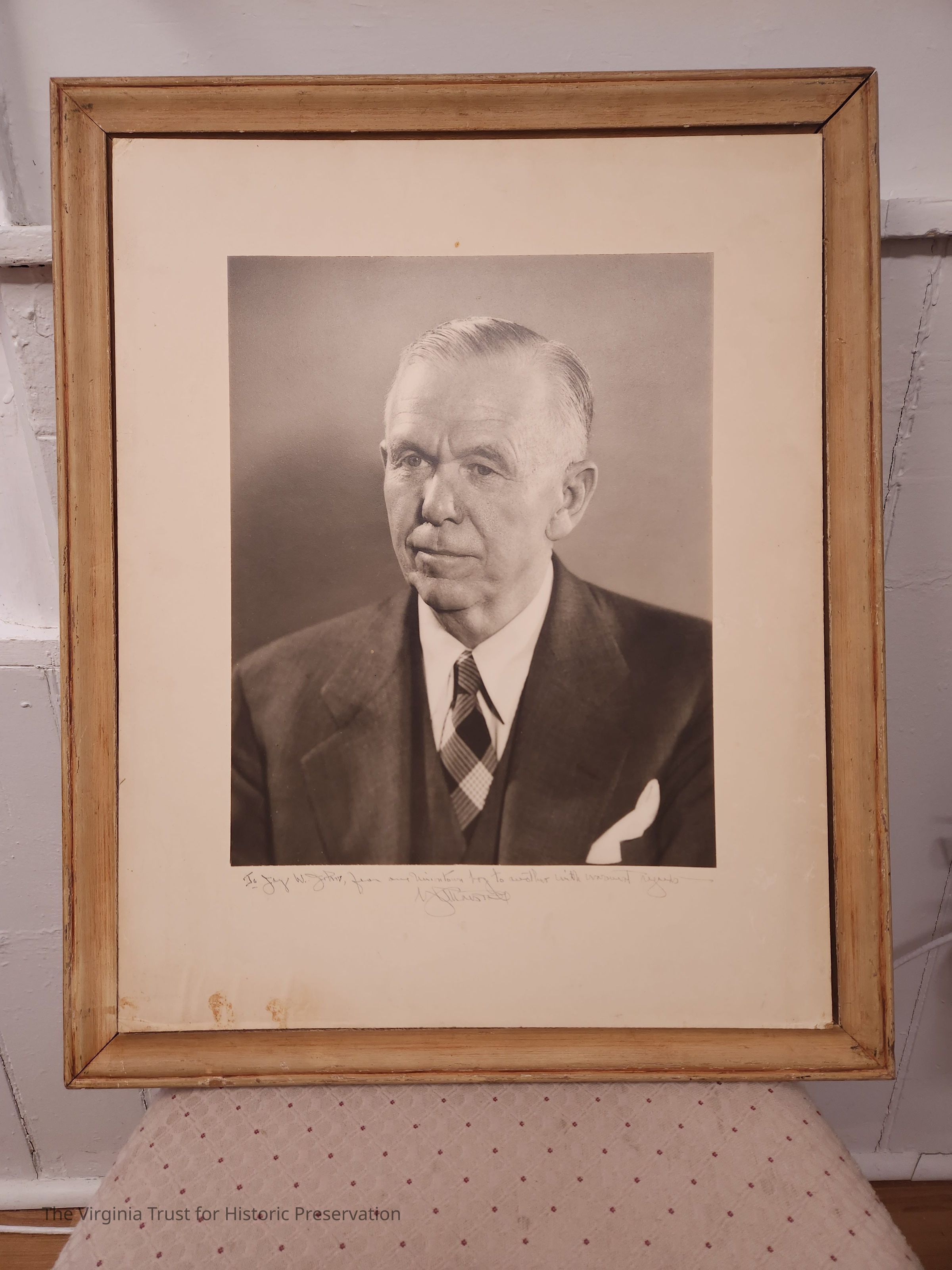 Framed autographed photograph of George Marshall. Inscribed "To Jay W. Johns from one Unionstown boy to another with warmest regards."