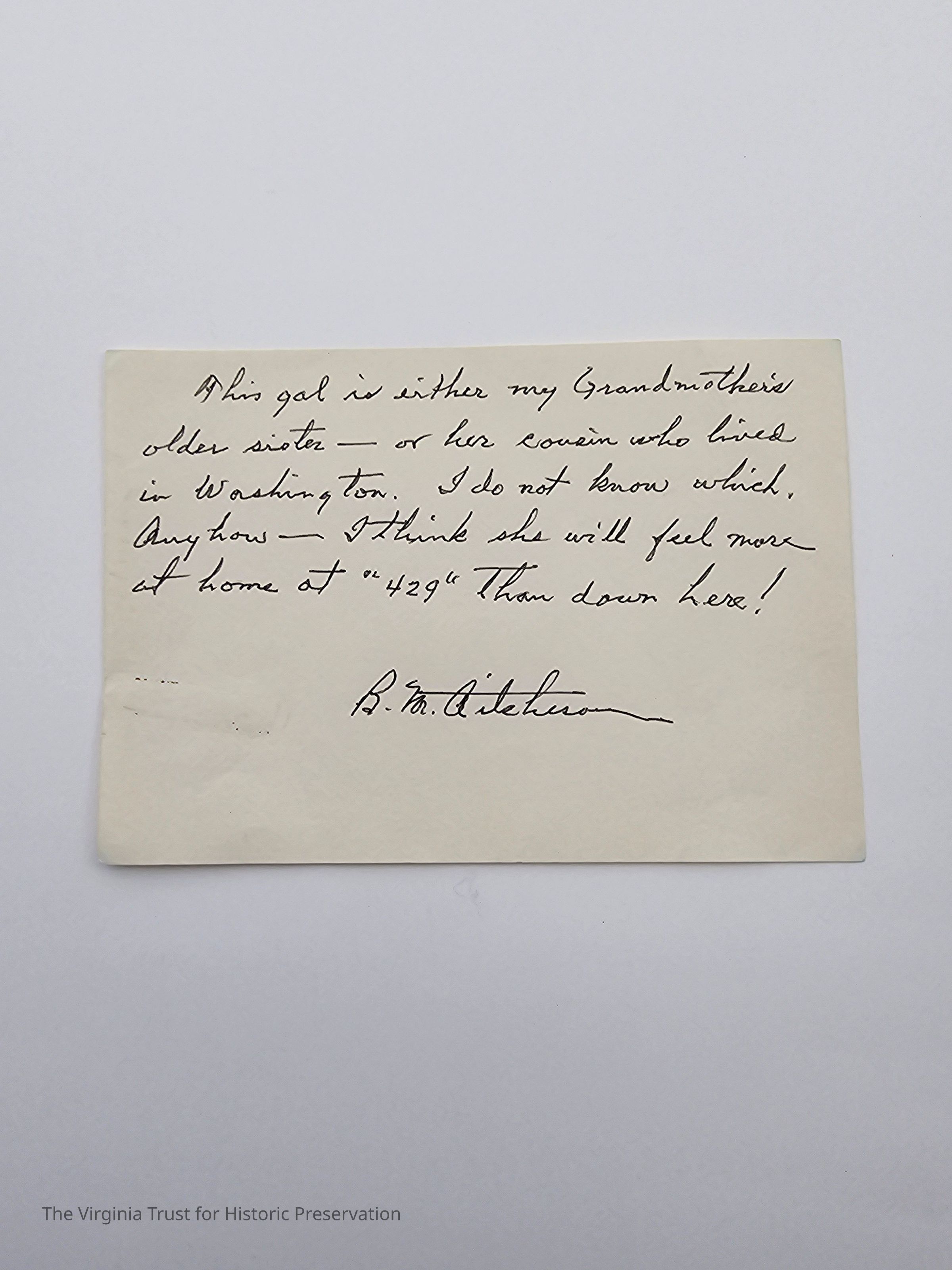 Seated woman - either Benjamin McKnew Aitcheson Jr.'s grandmother or Grandmother's cousin from Washington.