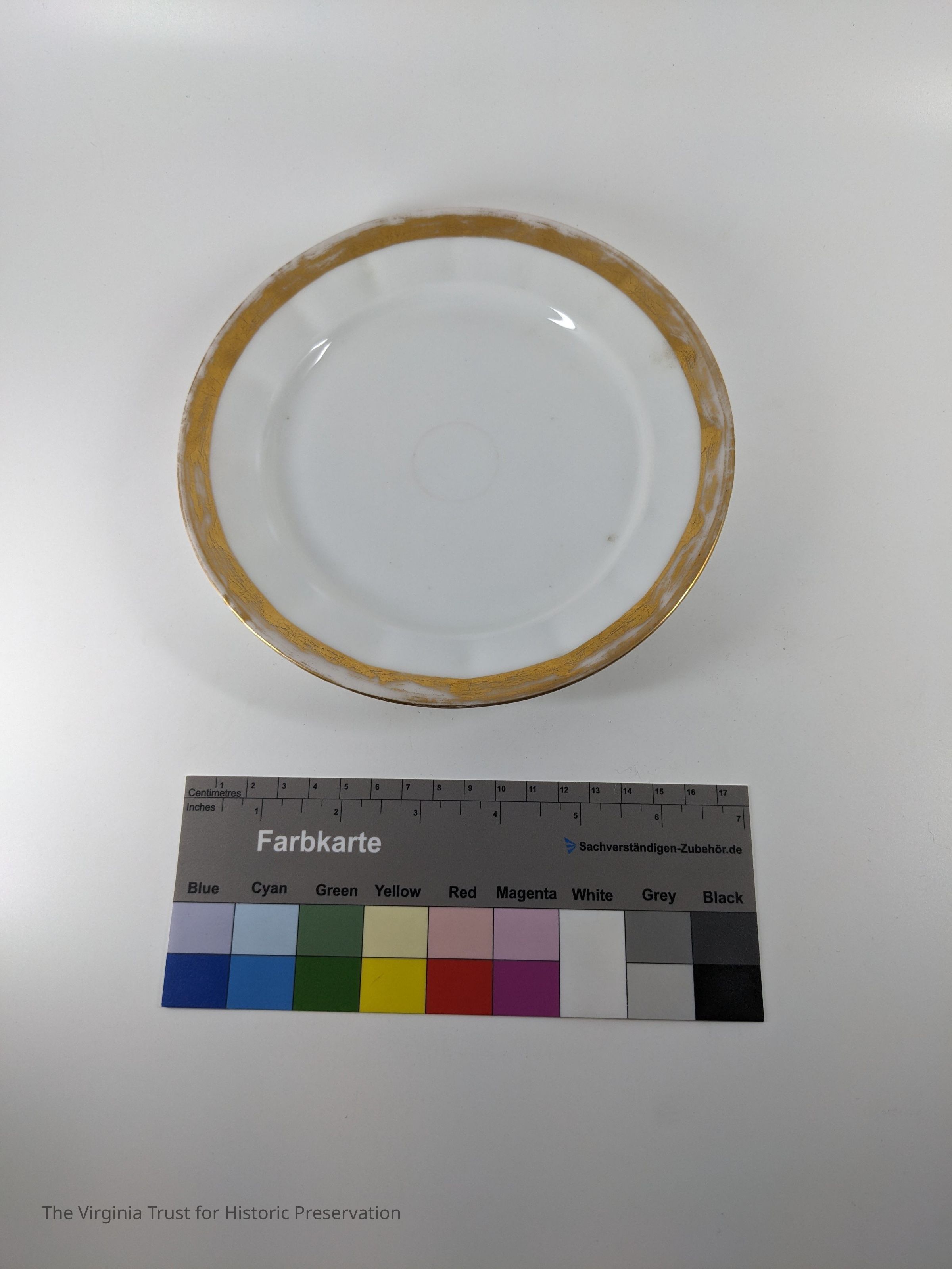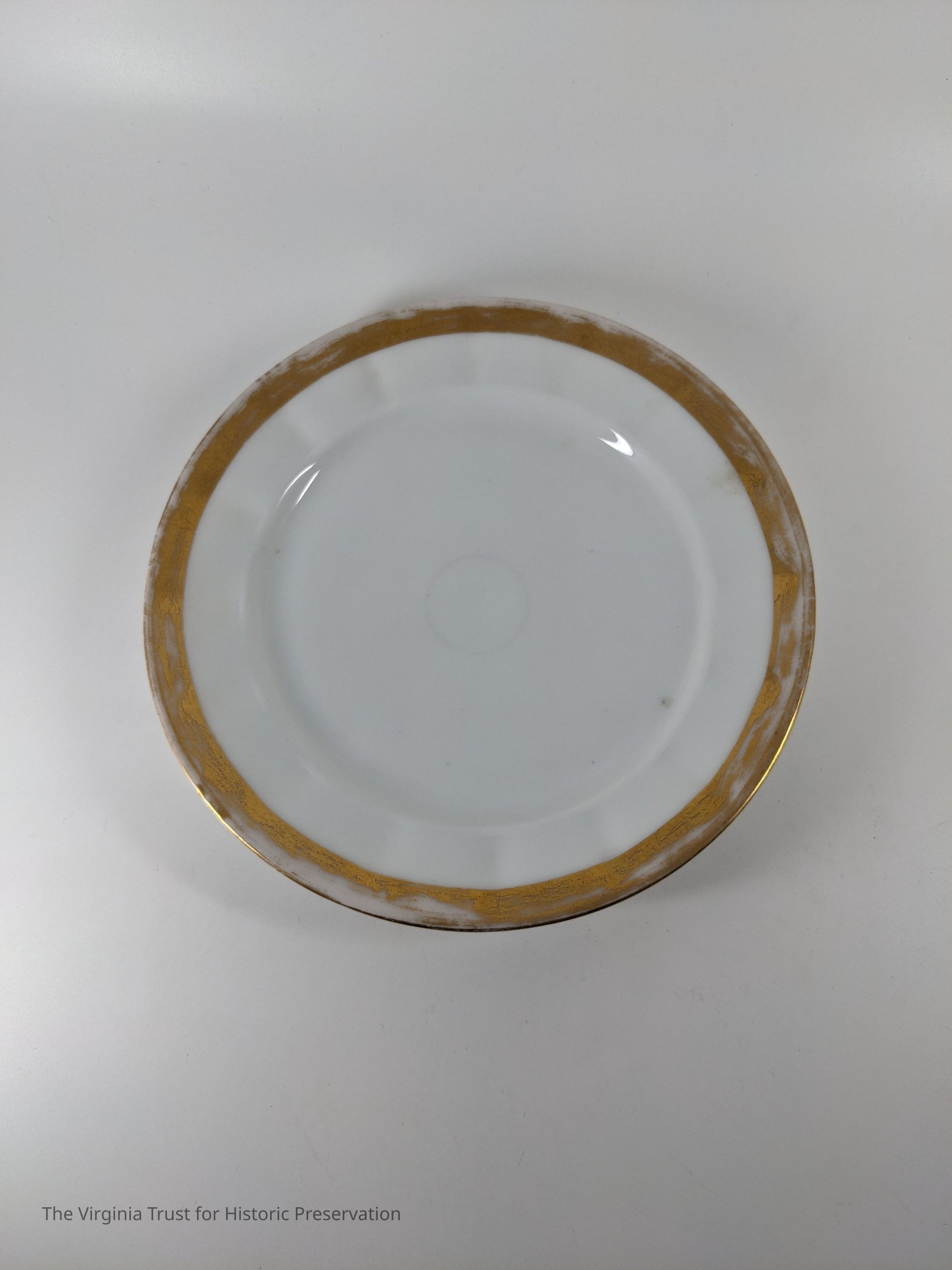 Set of six old paris plates. White with gold rim. Wedding ring pattern, no markings.